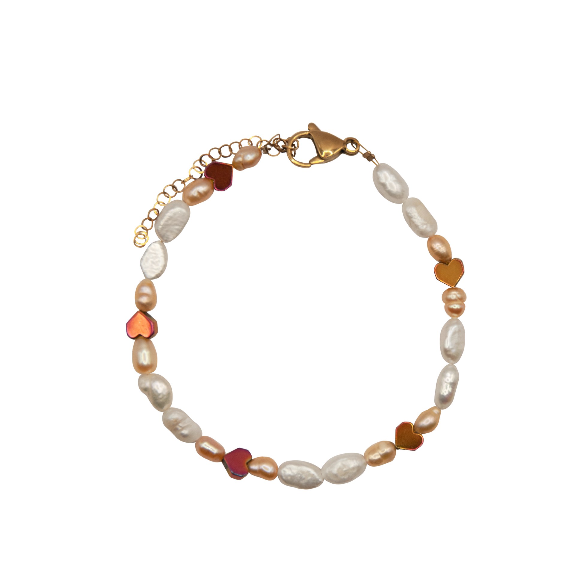 Bratara lucrata manual din perle de cultura roz/albe, hematit electroplacat si otel inoxidabil placat cu aur 18k
