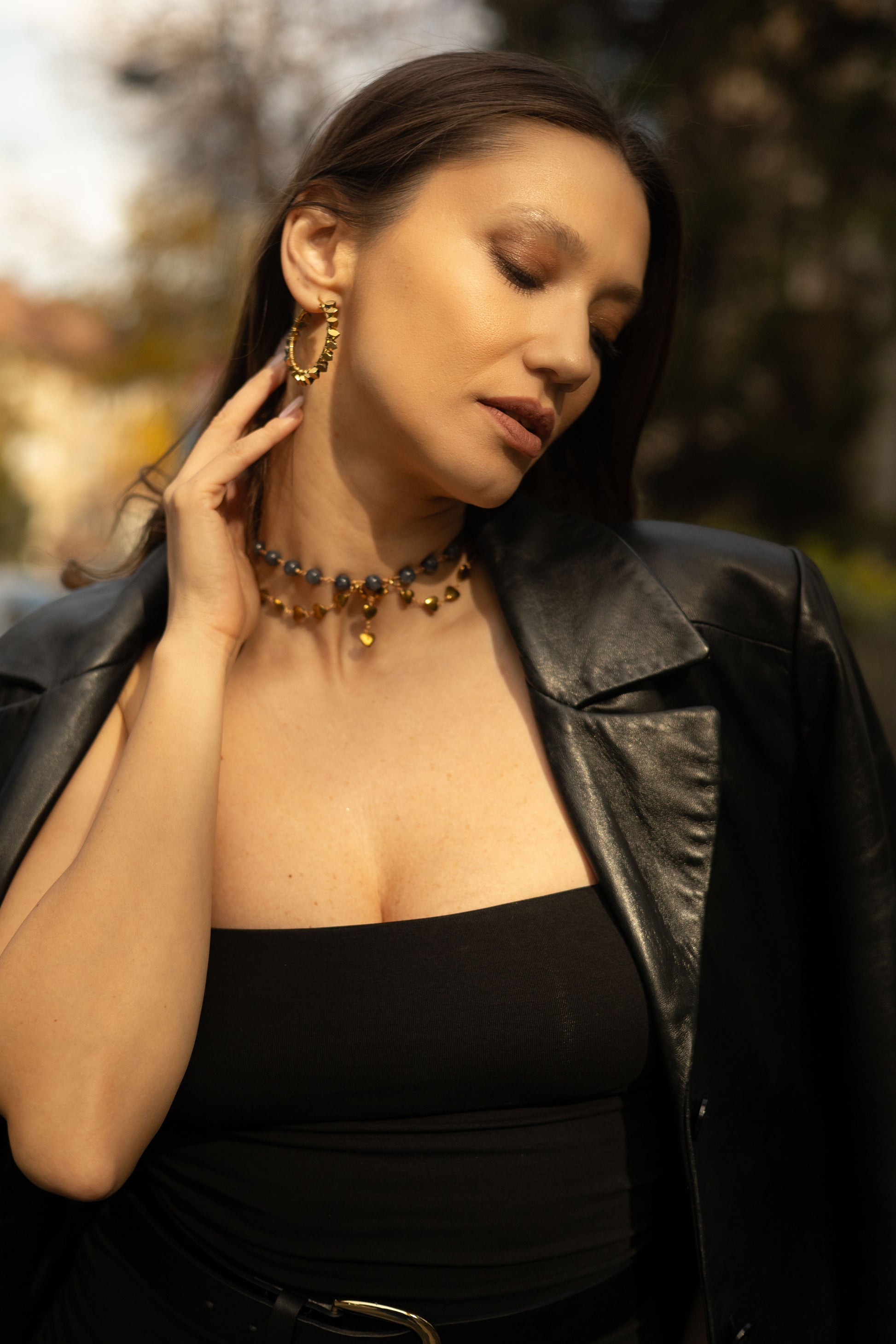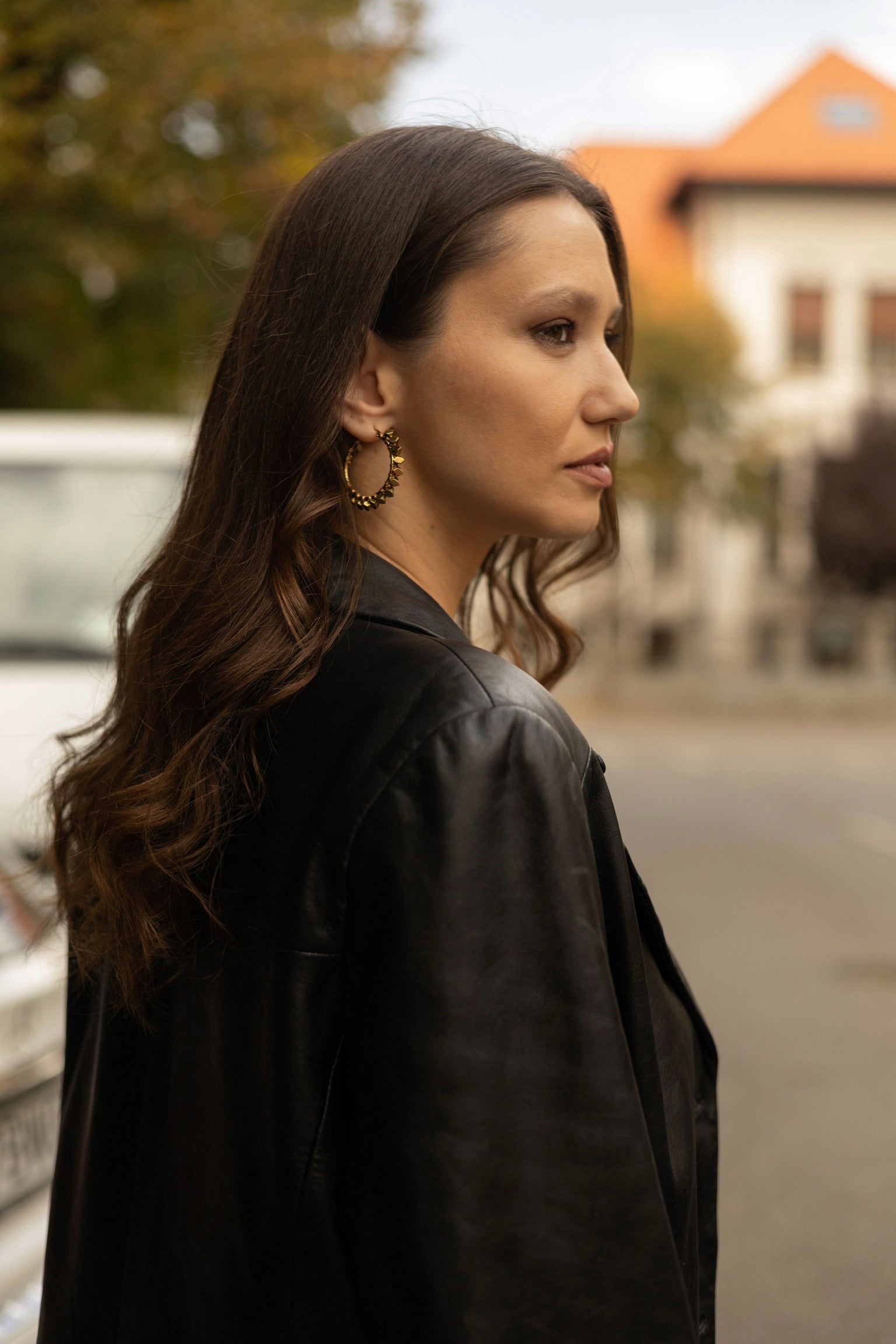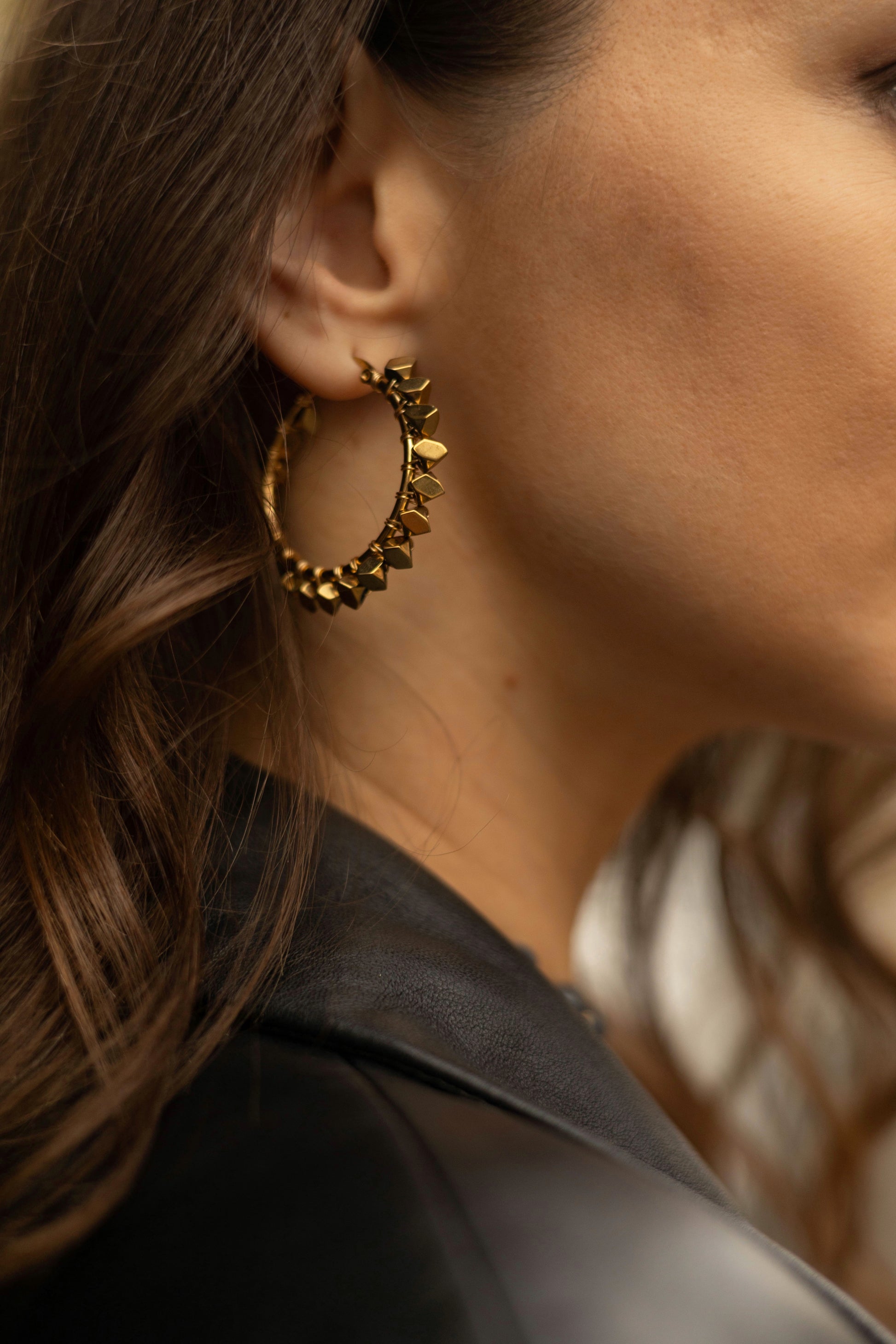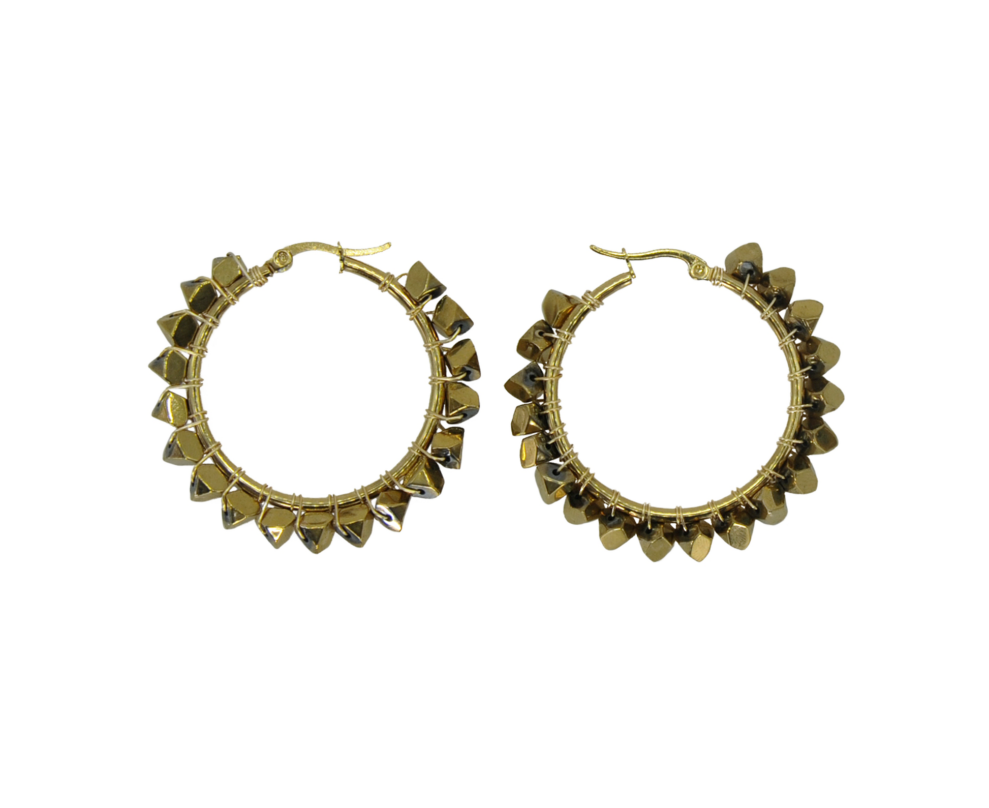 Cercei din oțel inoxidabil placat cu aur 18k și hematit natural