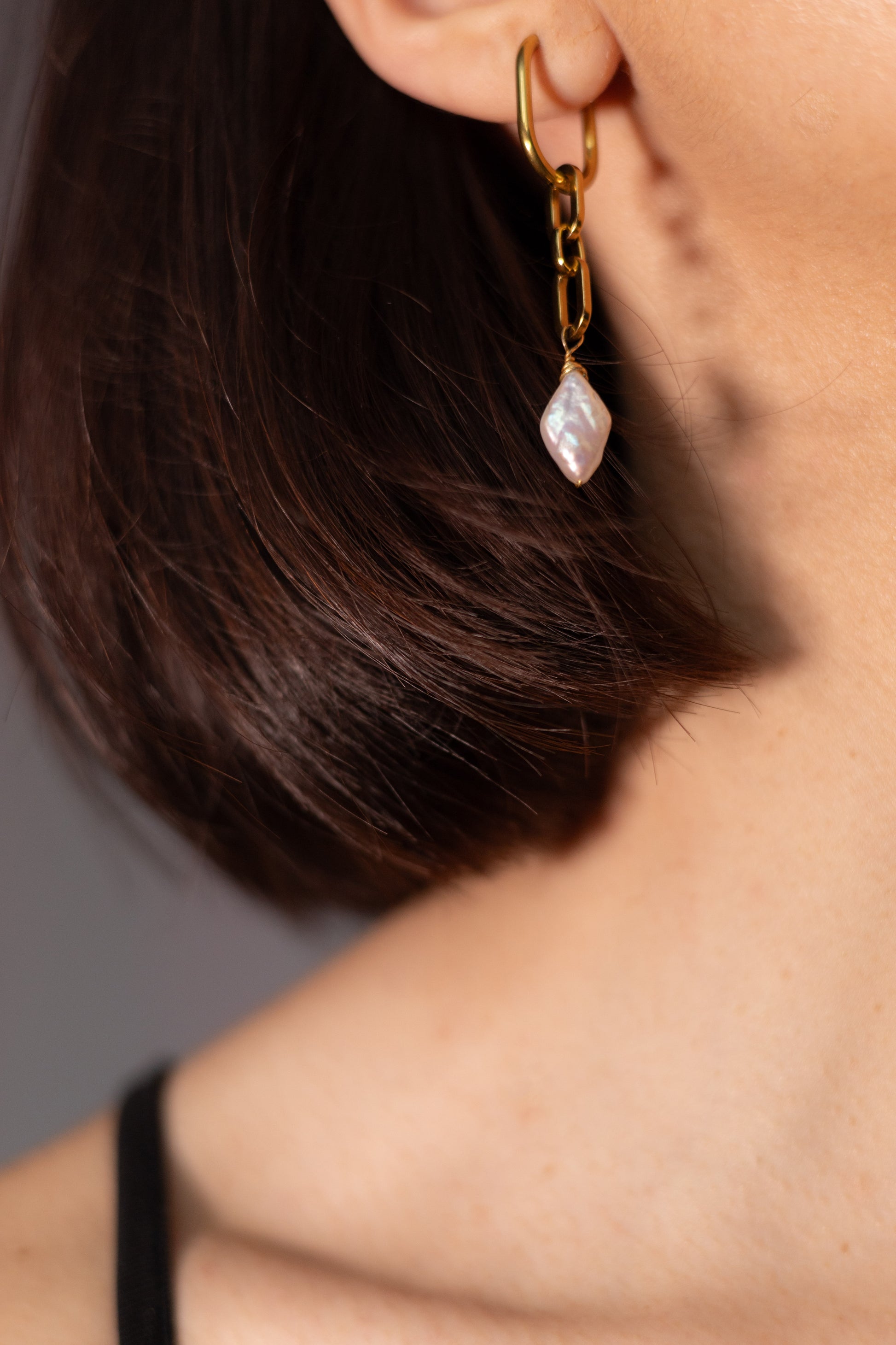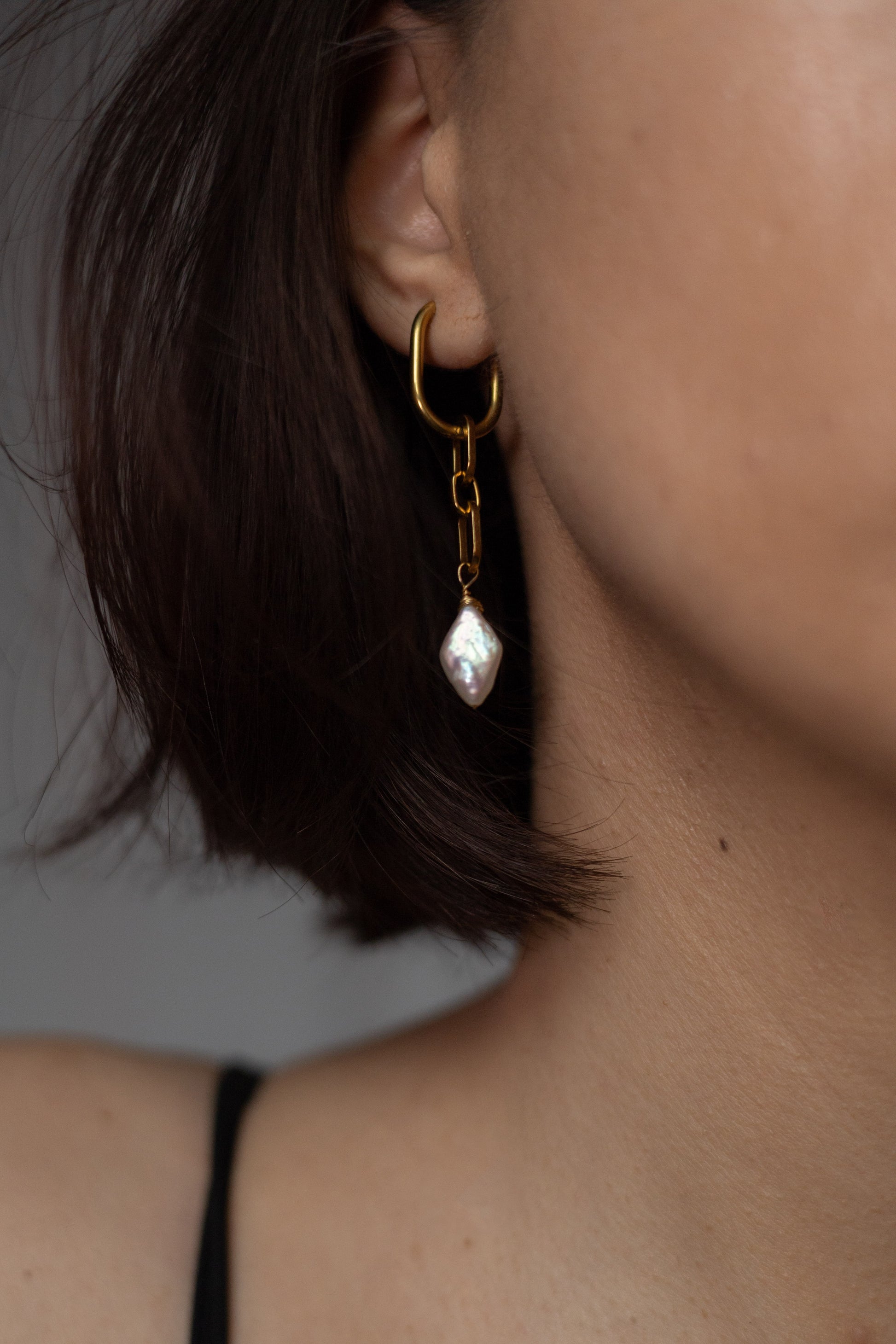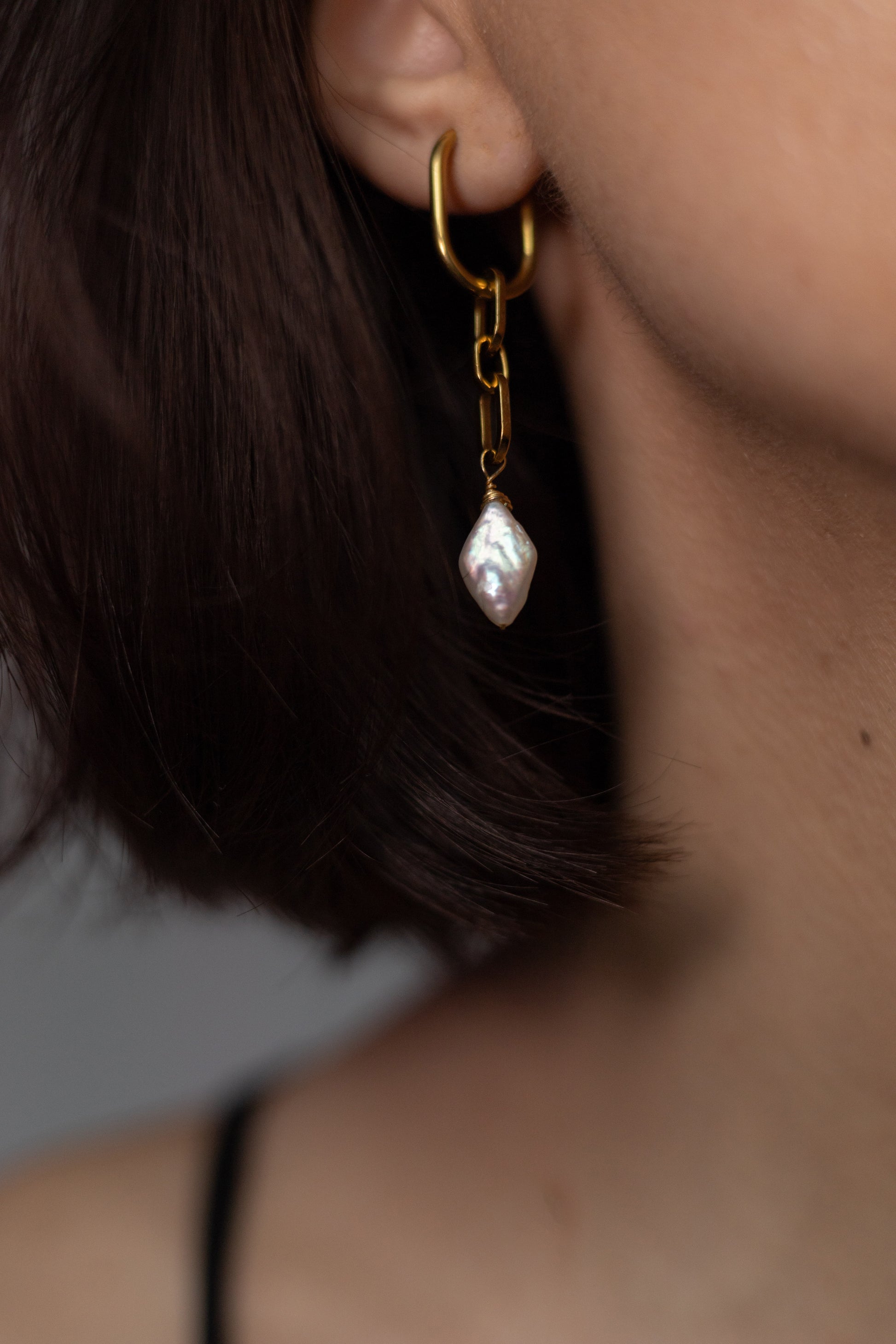 Cercei din oțel inoxidabil placat cu aur 18k și perle baroc