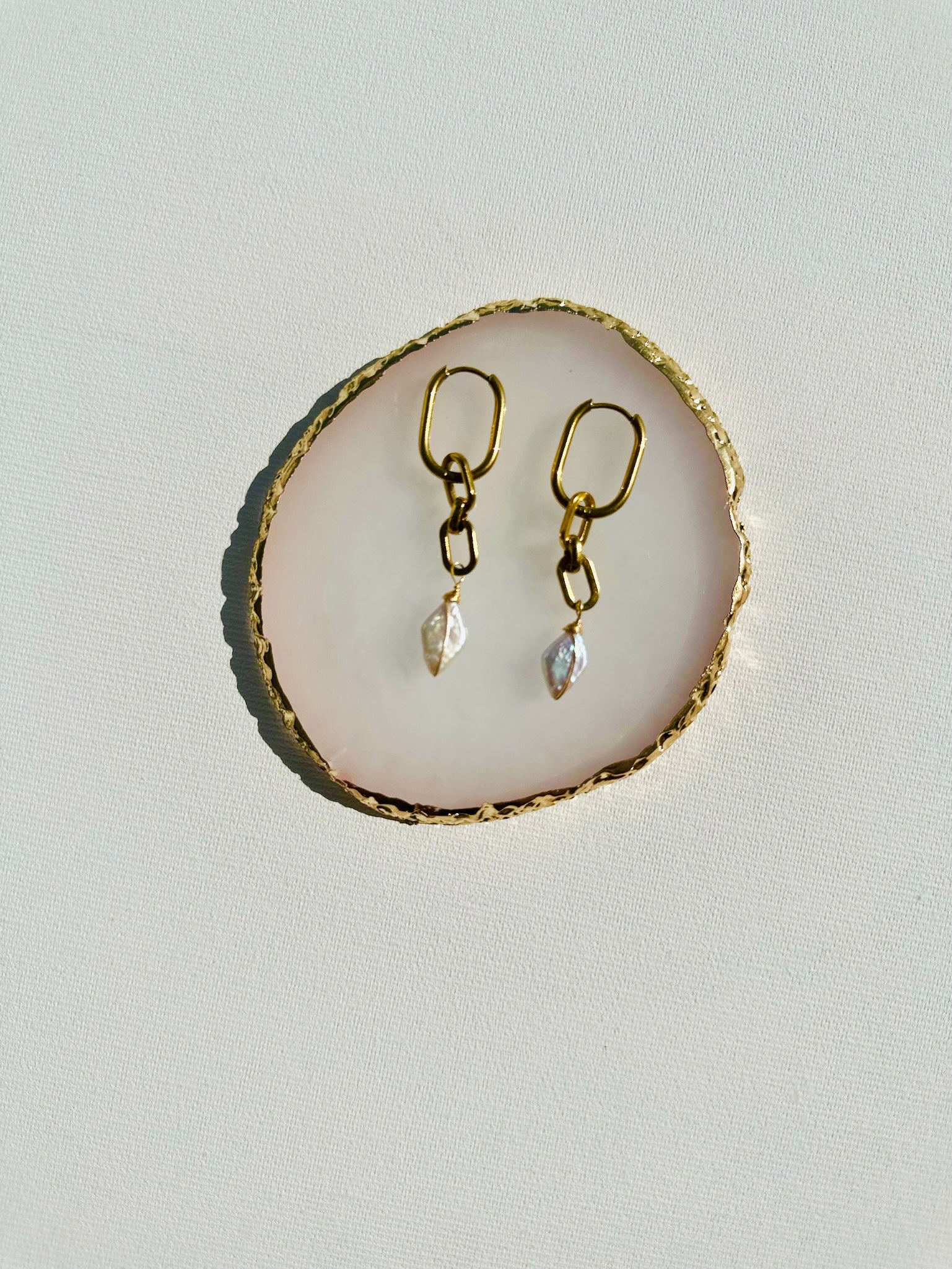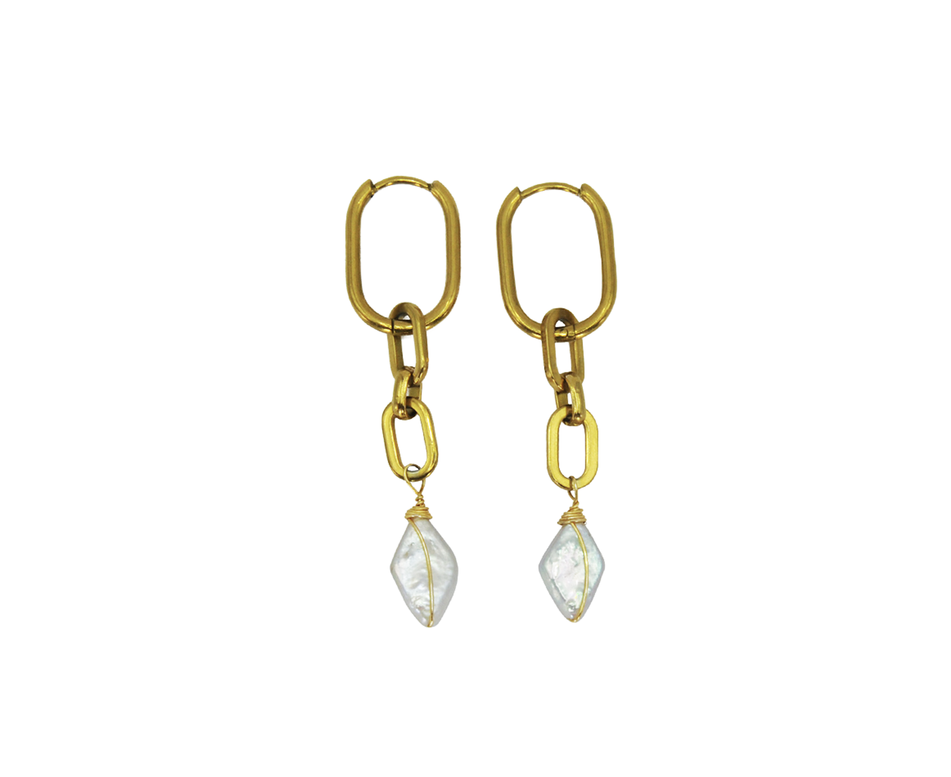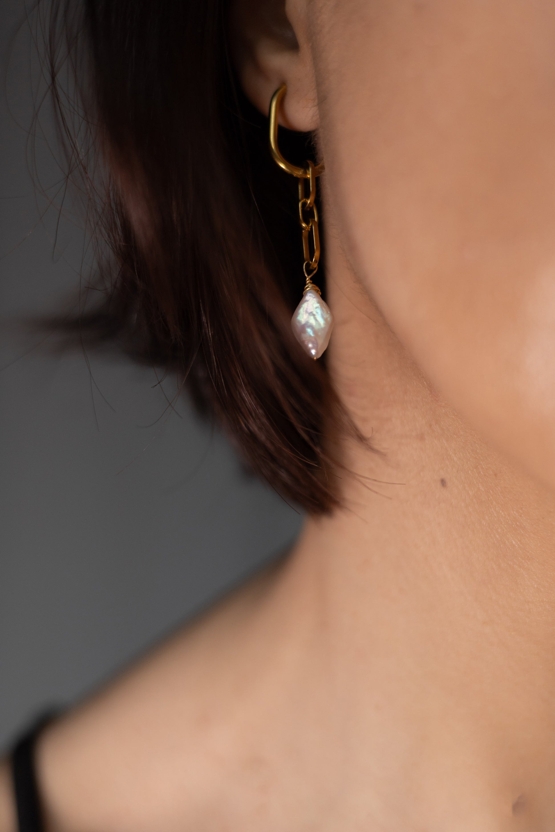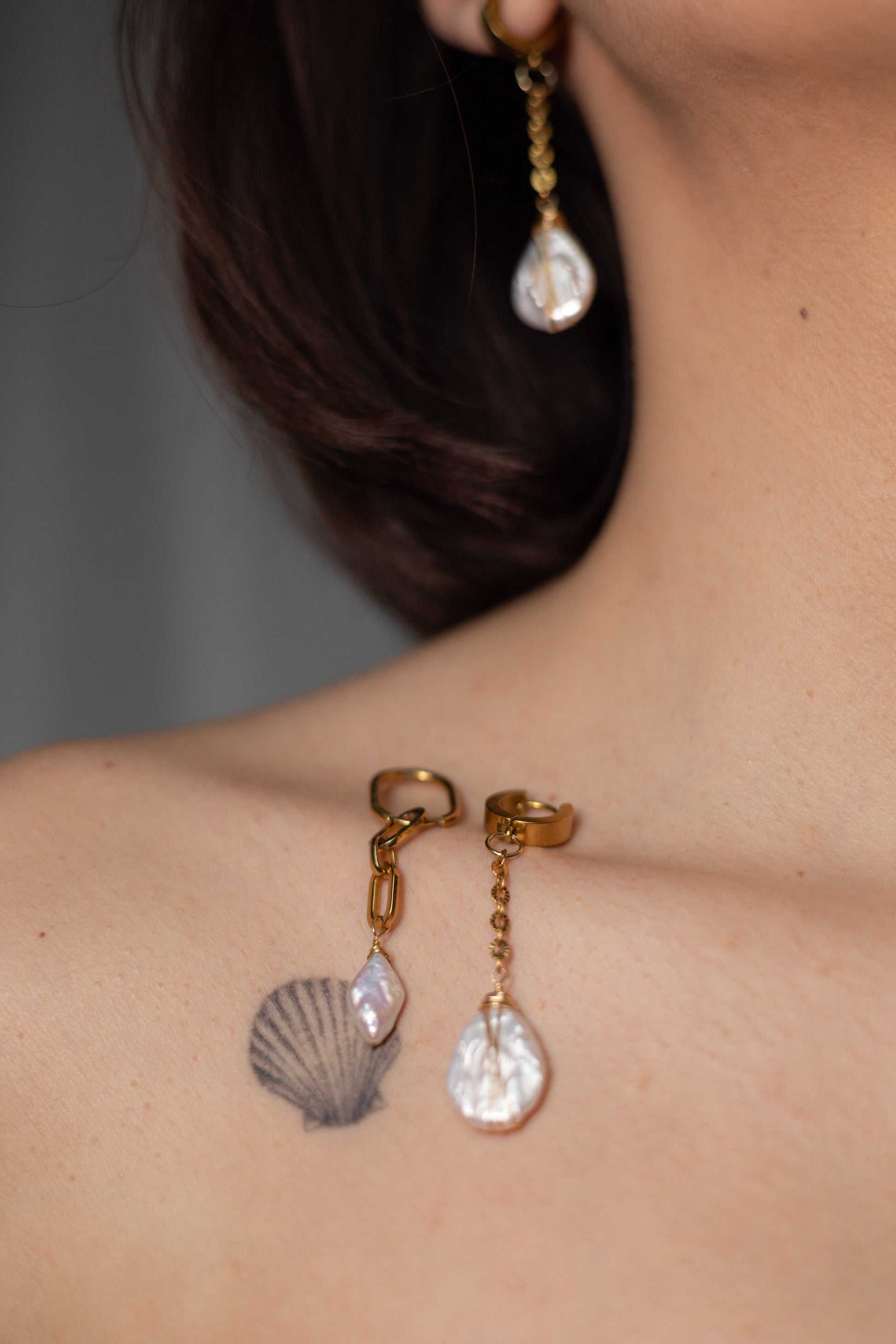 Cercei din oțel inoxidabil placat cu aur 18k și perle baroc