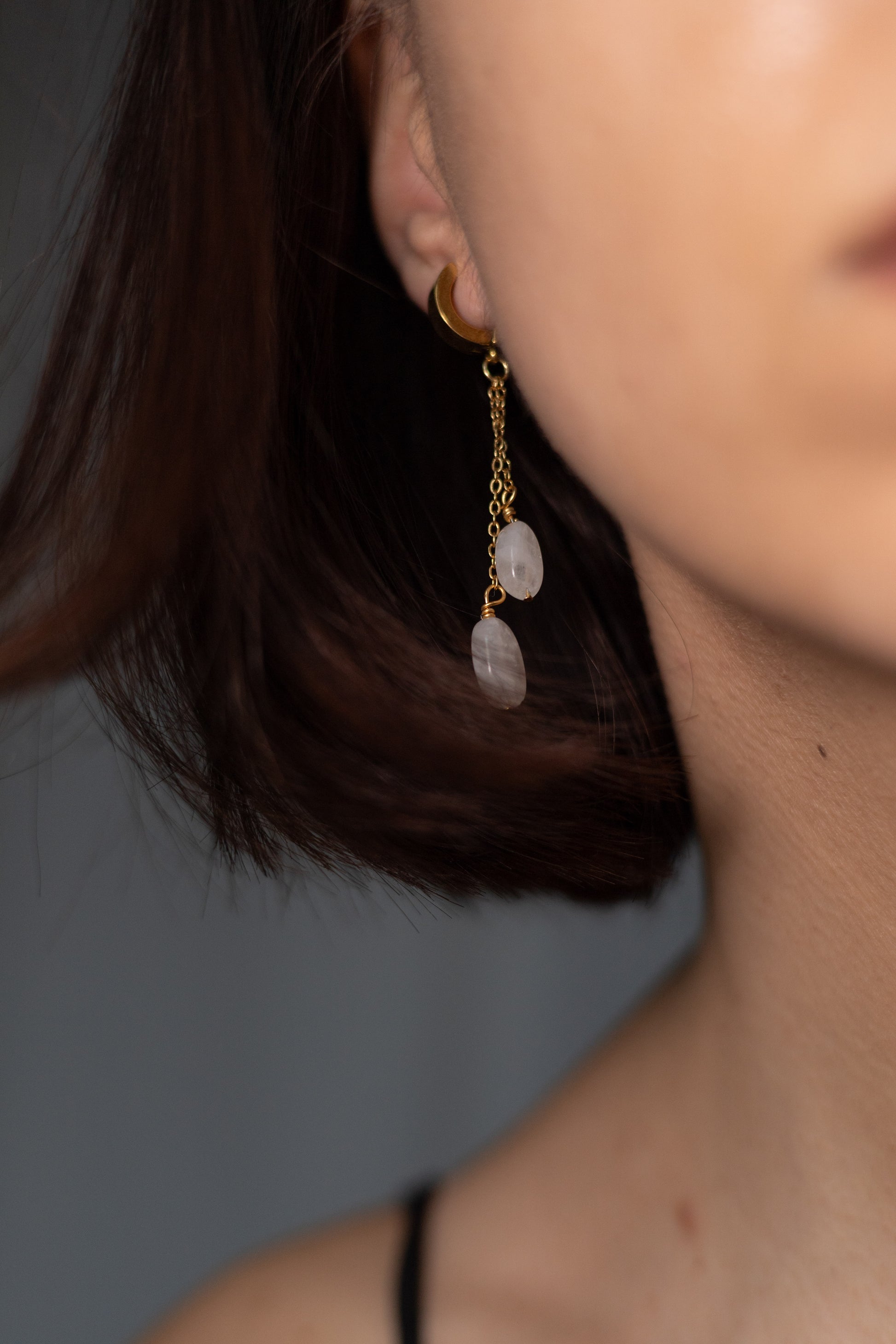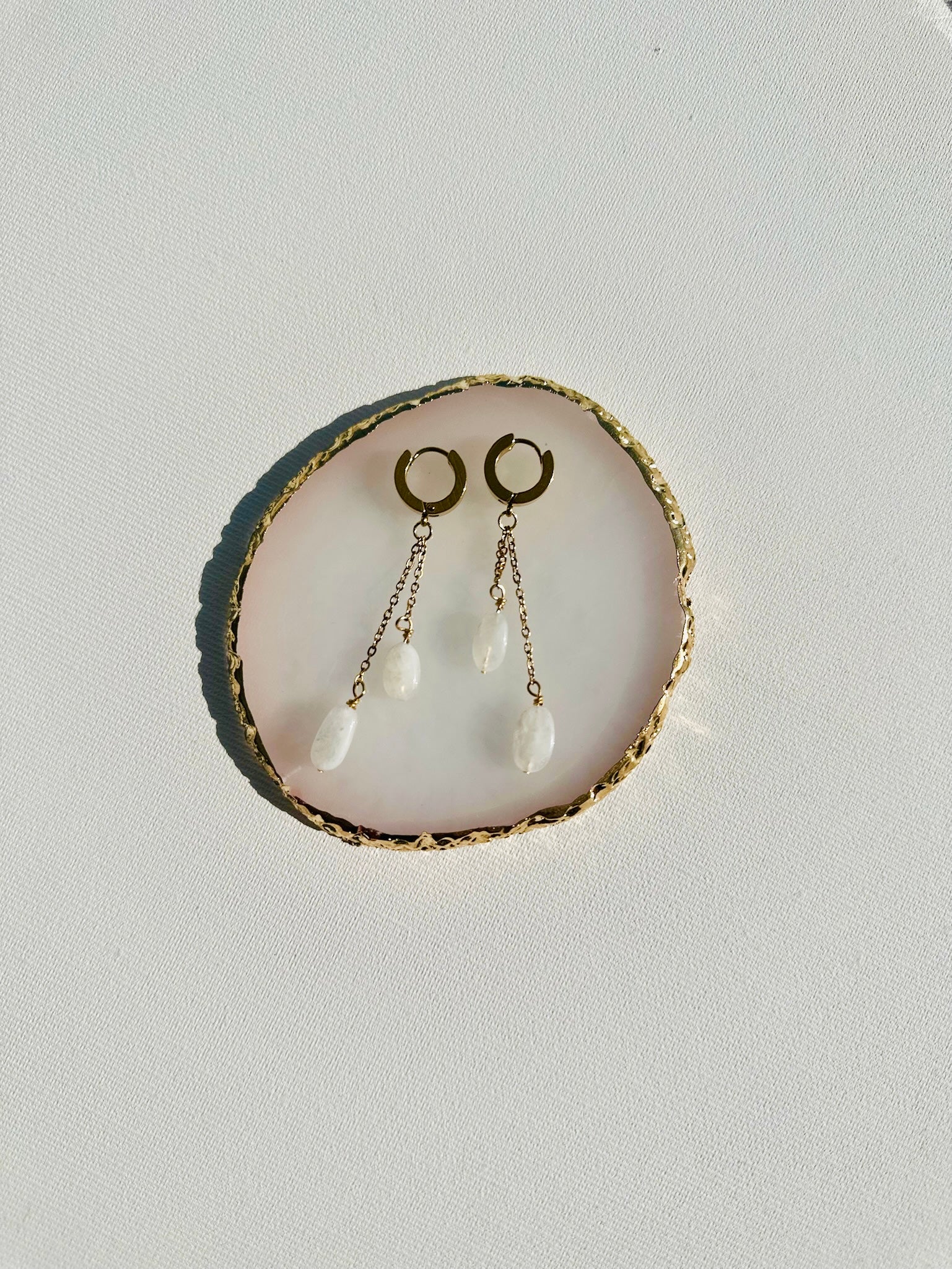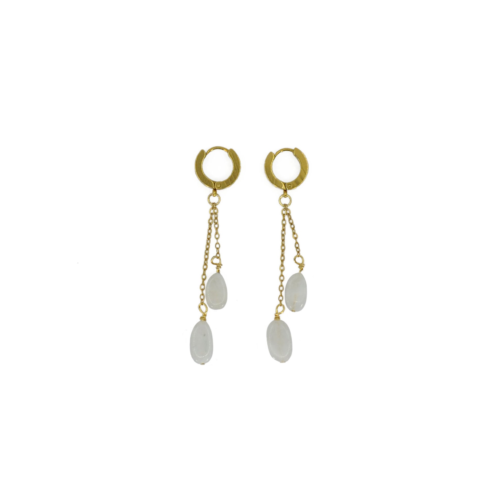 Cercei lucrați manual cu piatra lunii naturală și accesorii metalice din oțel inoxdabil placate cu aur 18k