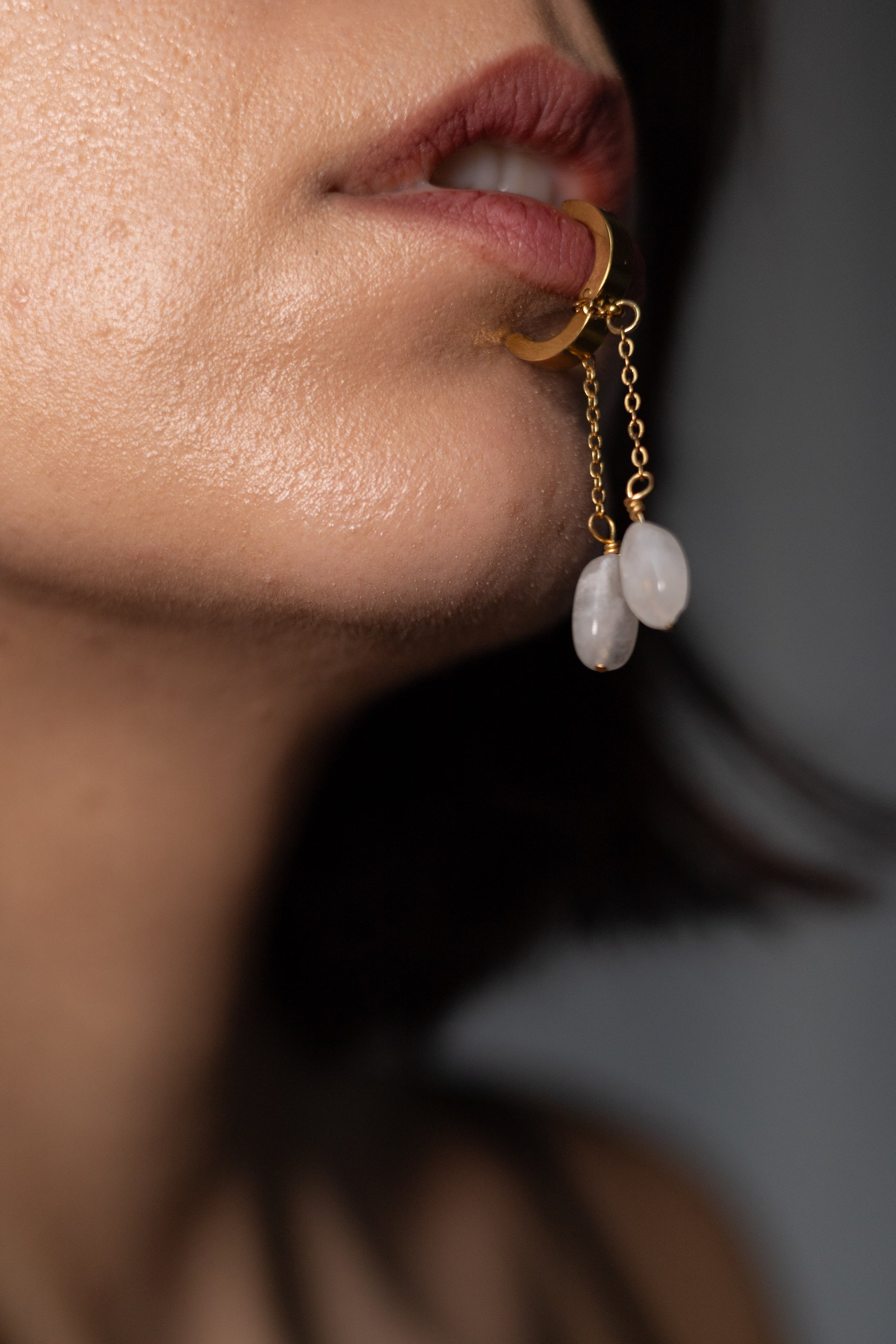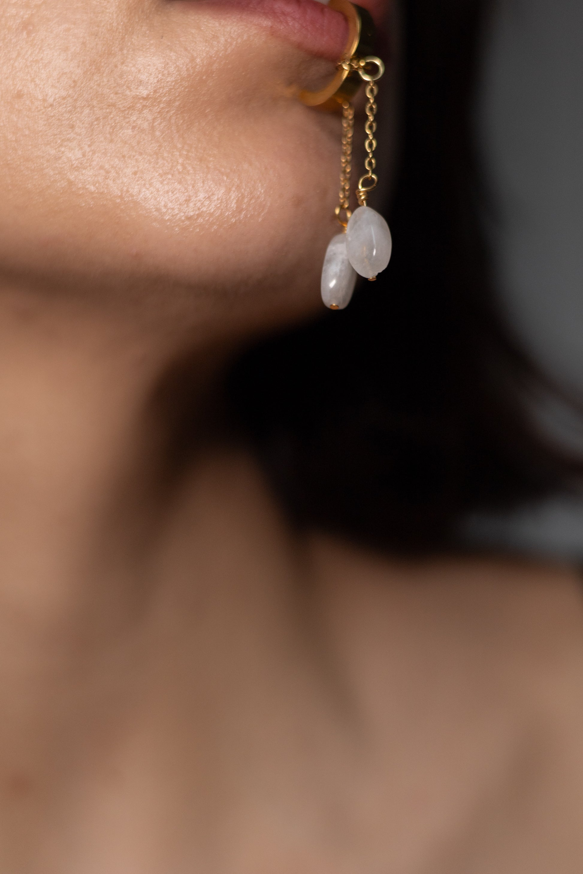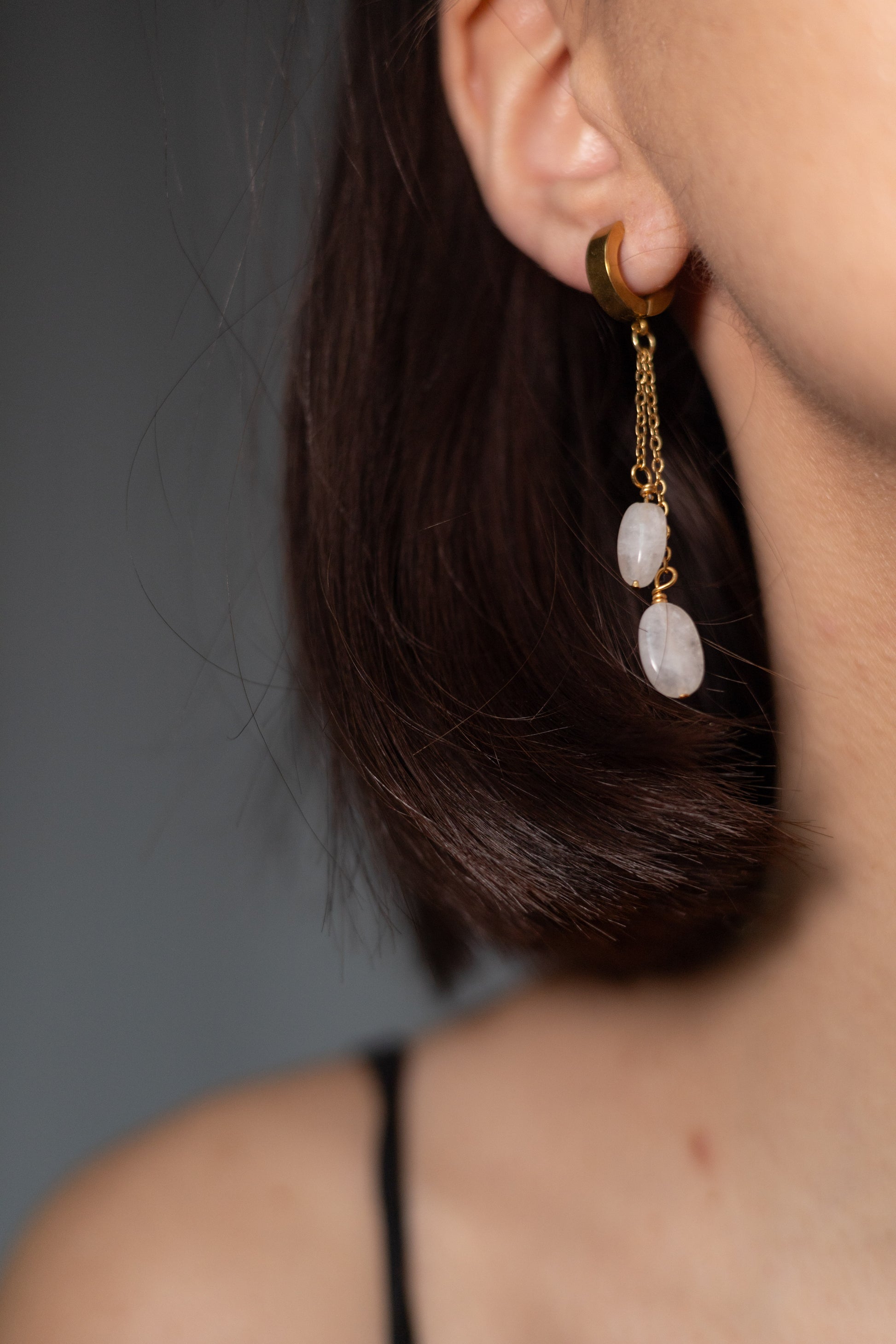 Cercei lucrați manual cu piatra lunii naturală și accesorii metalice din oțel inoxdabil placate cu aur 18k