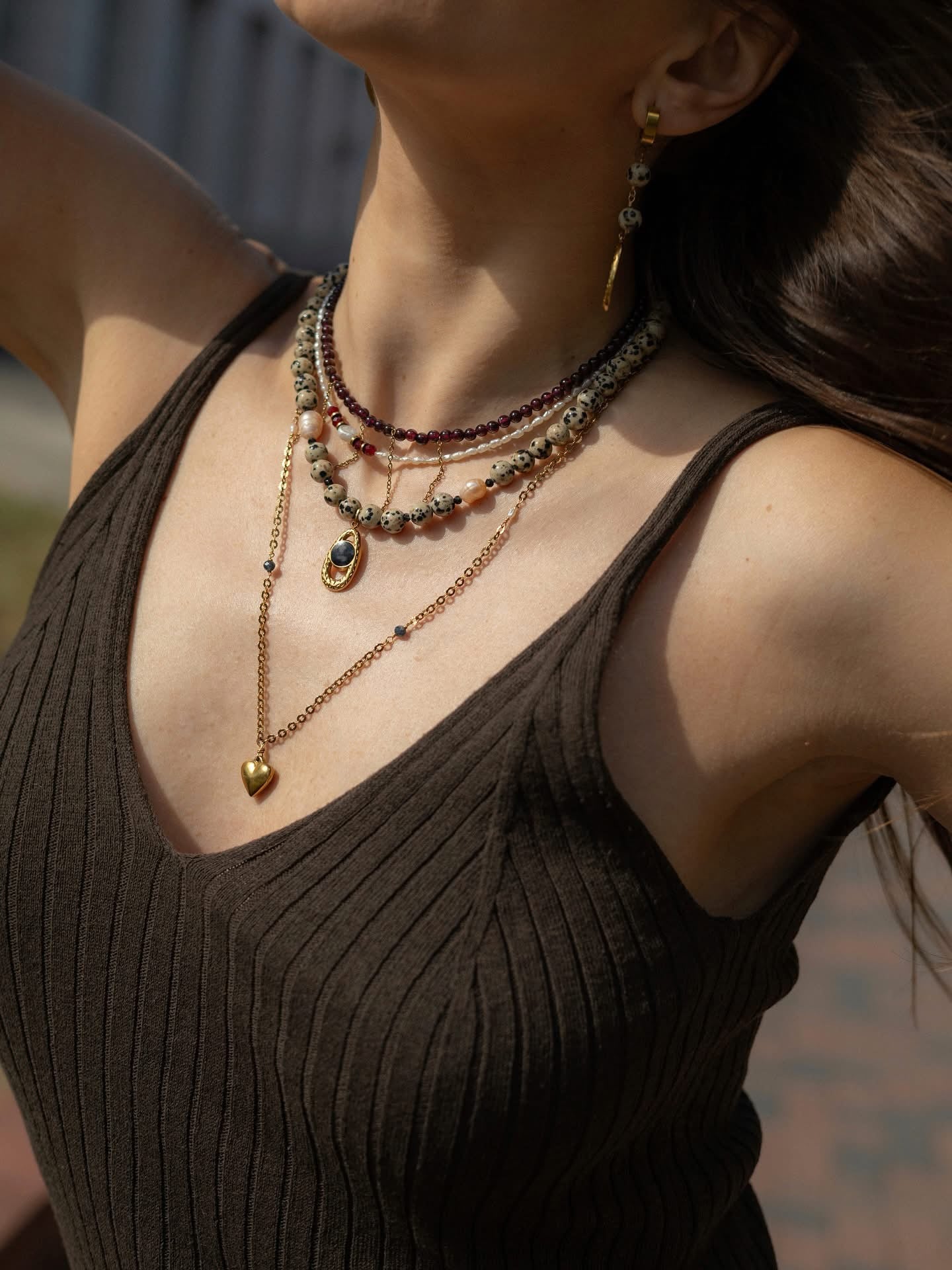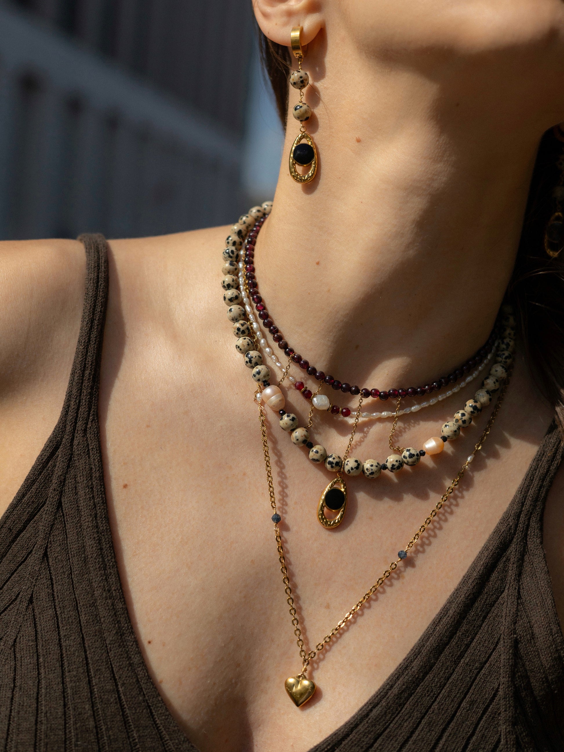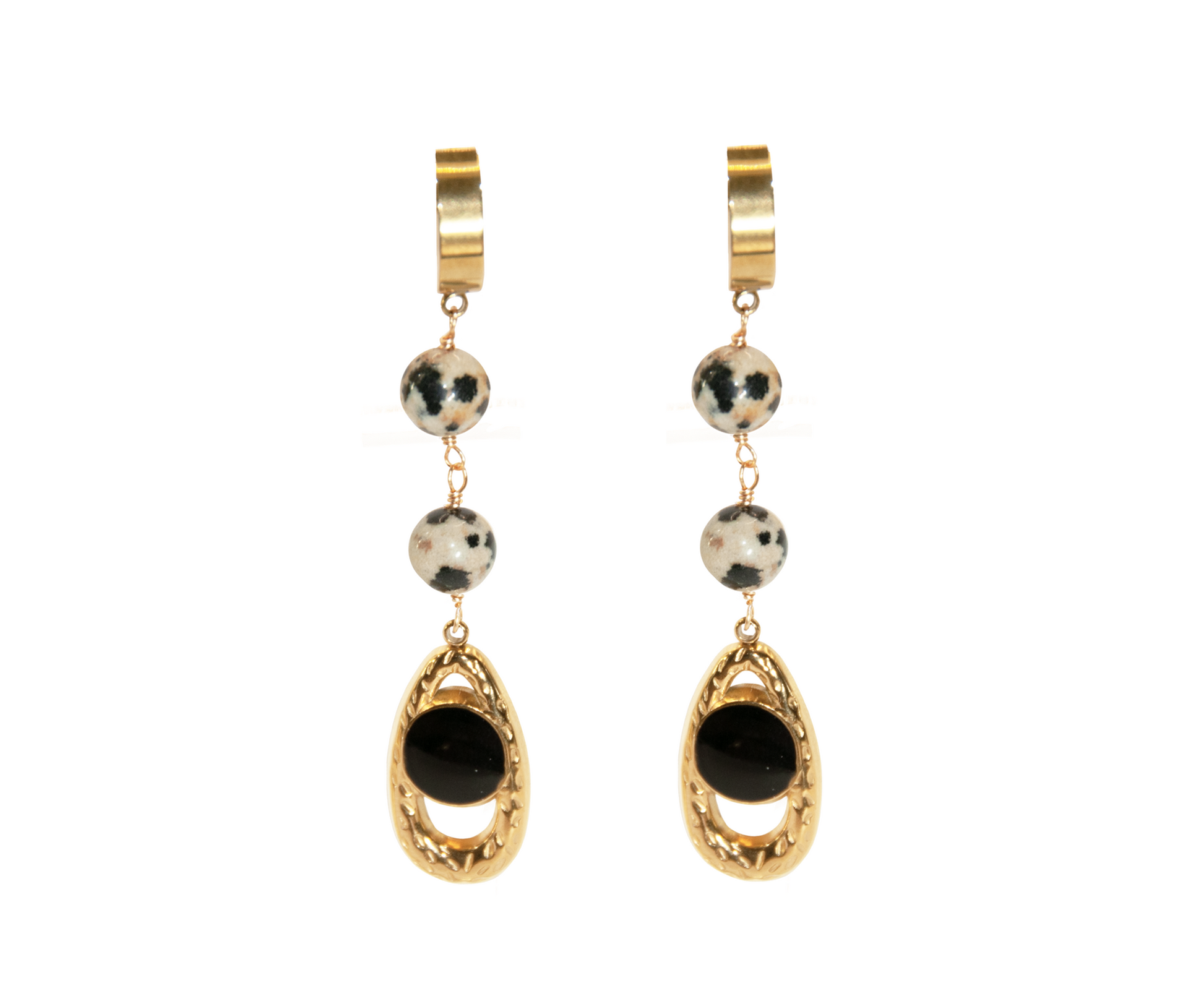 Cercei lucrati manual din pietre naturale Jasp Dalmatian si otel inoxidabil placat cu aur 18k