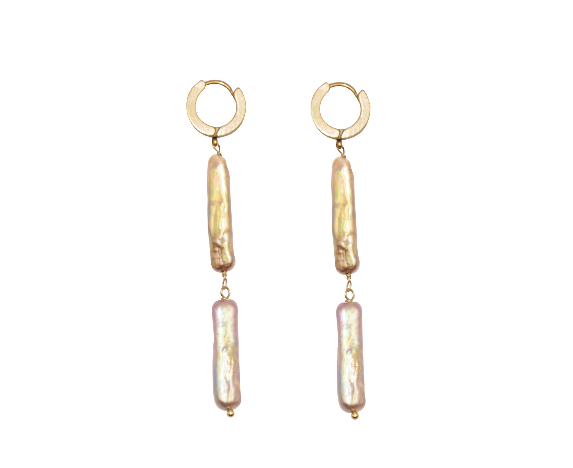 Cercei realizați manual din perle naturale baroc și oțel inoxidabil placat cu aur 18K