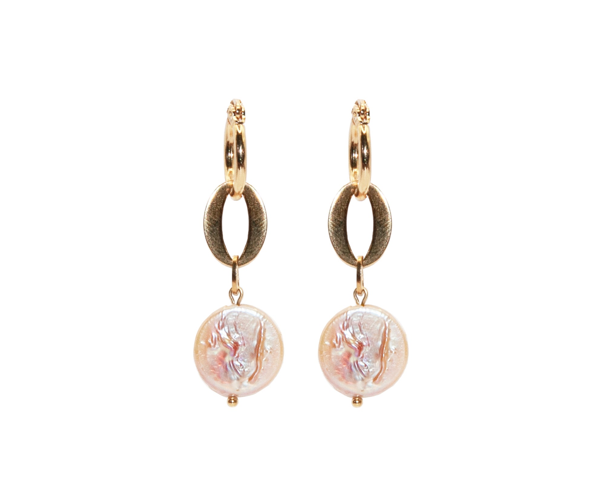 Cercei realizați manual din perla naturală baroc și oțel inoxidabil placat cu aur 18K