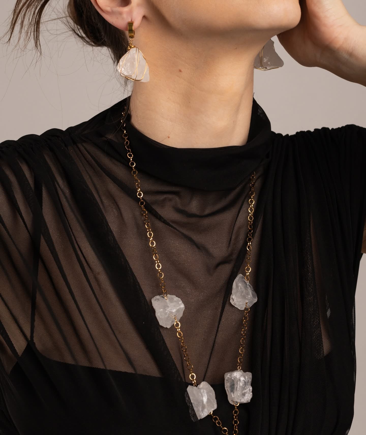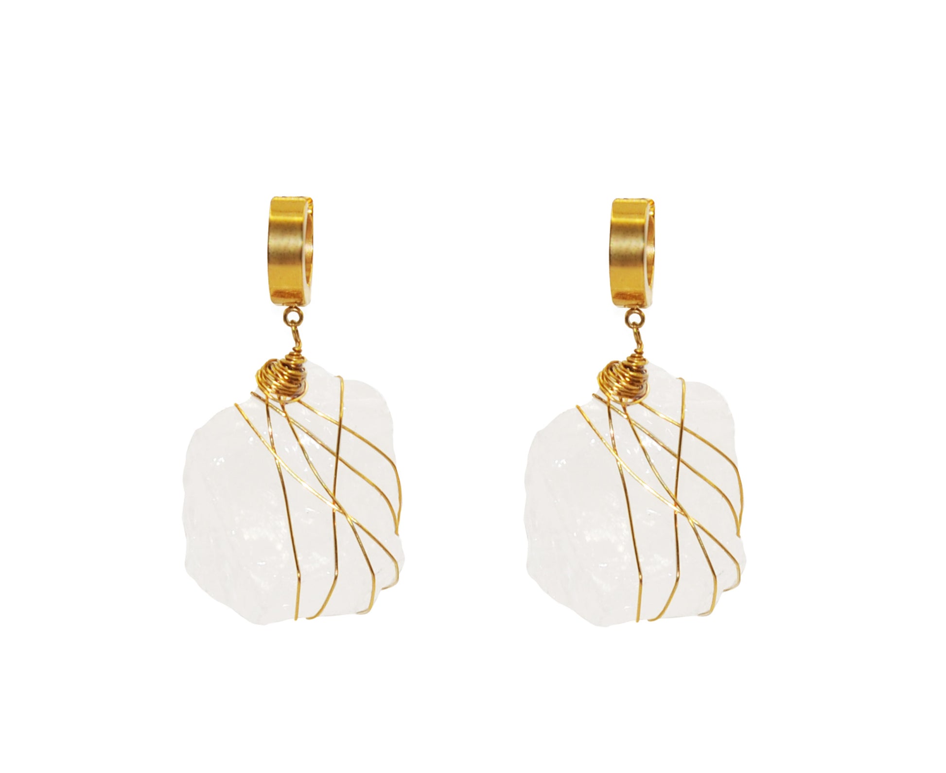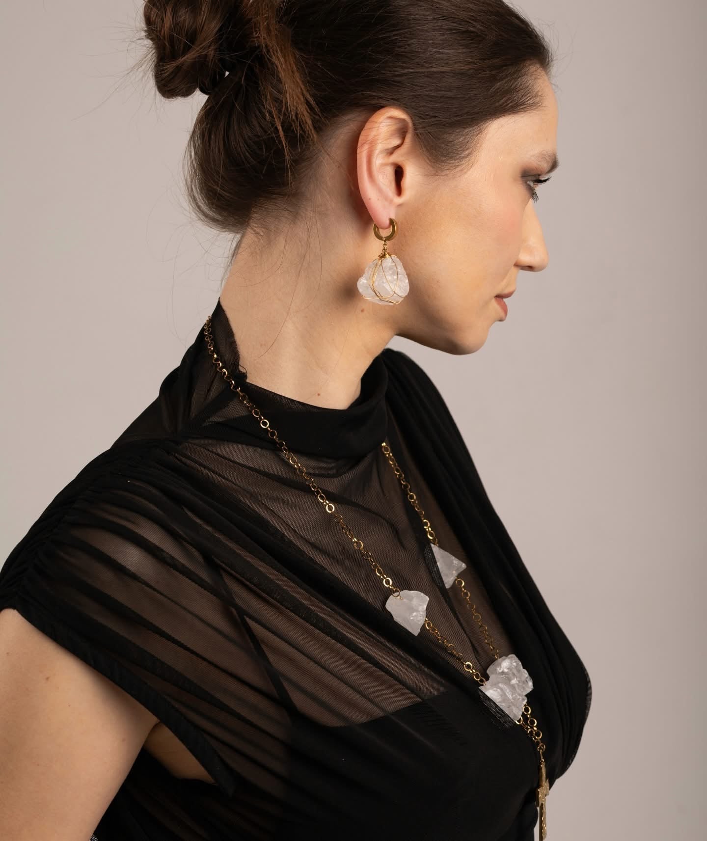 Cercei realizați manual din cuarț natural și oțel inoxidabil placat cu aur 18K