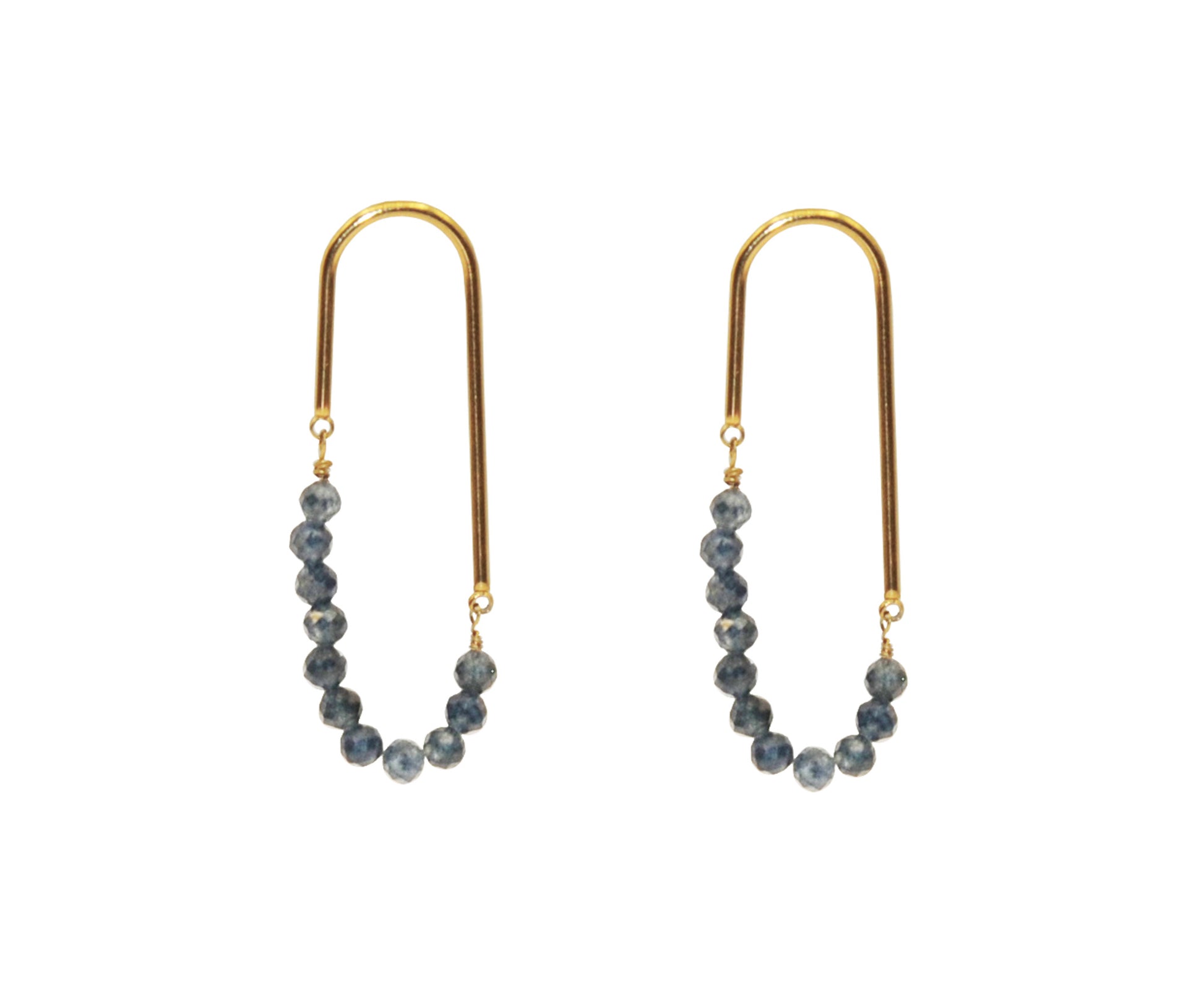 Cercei realizați manual din safir natural și oțel inoxidabil placat cu aur 18K