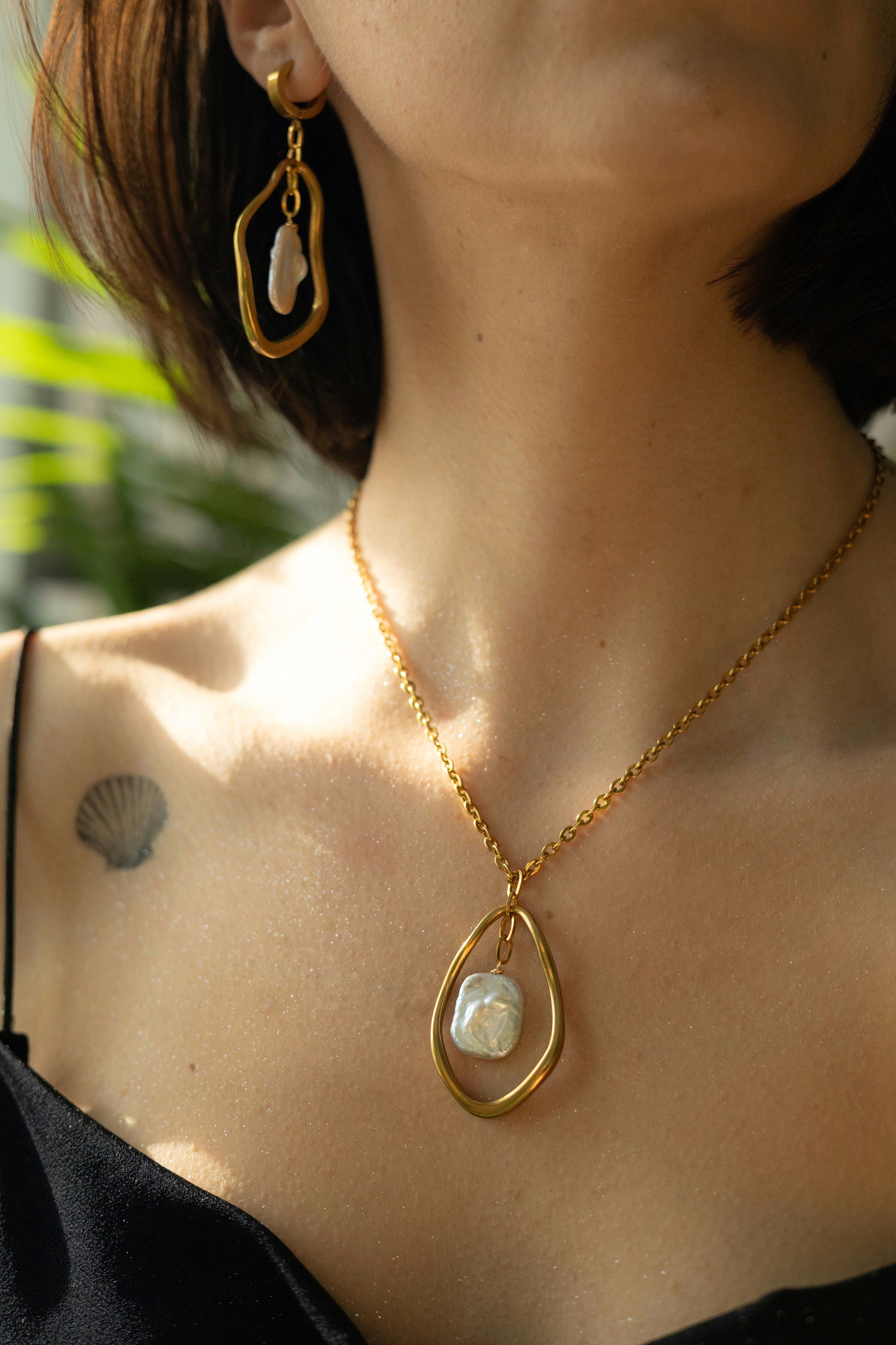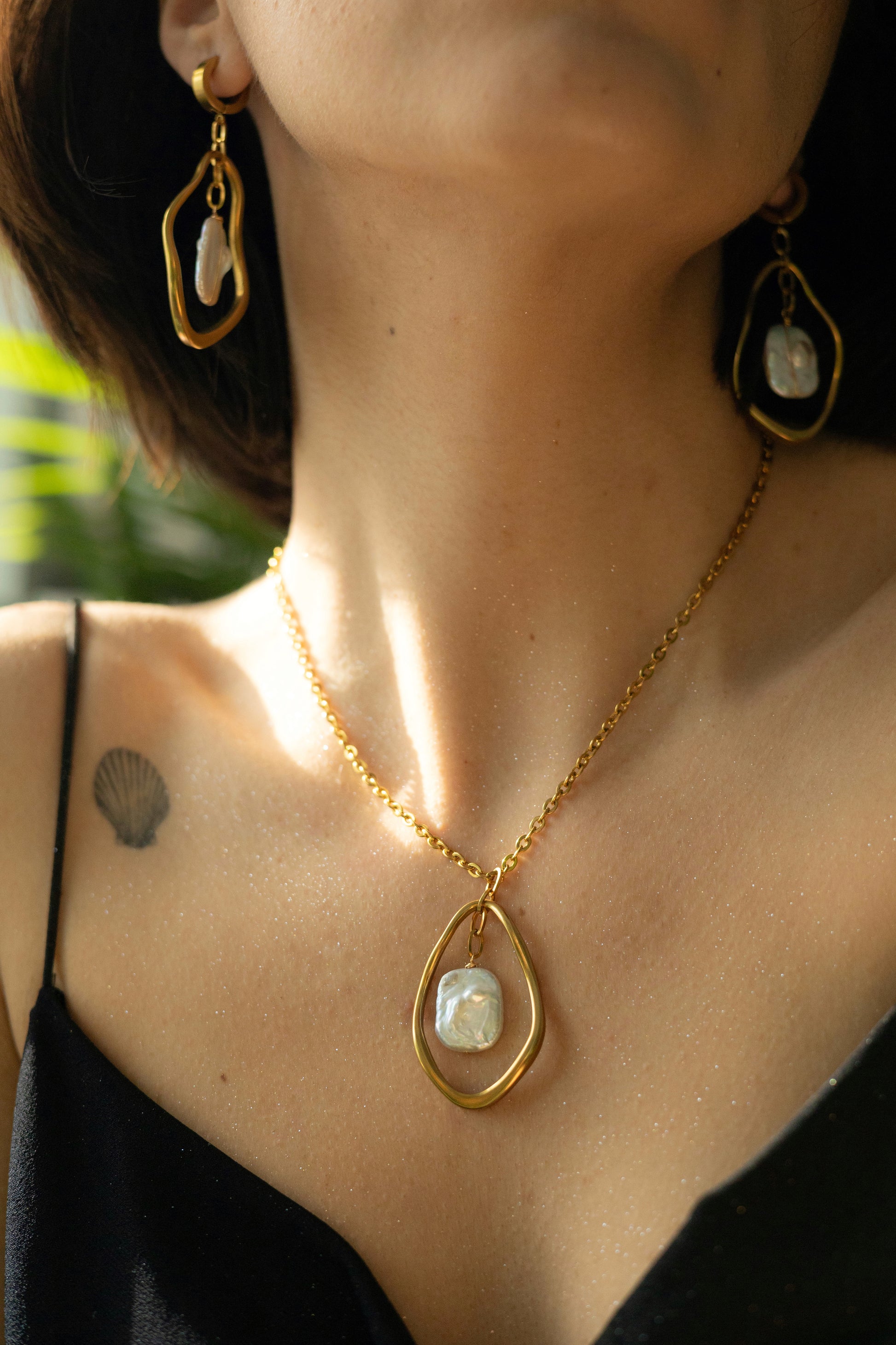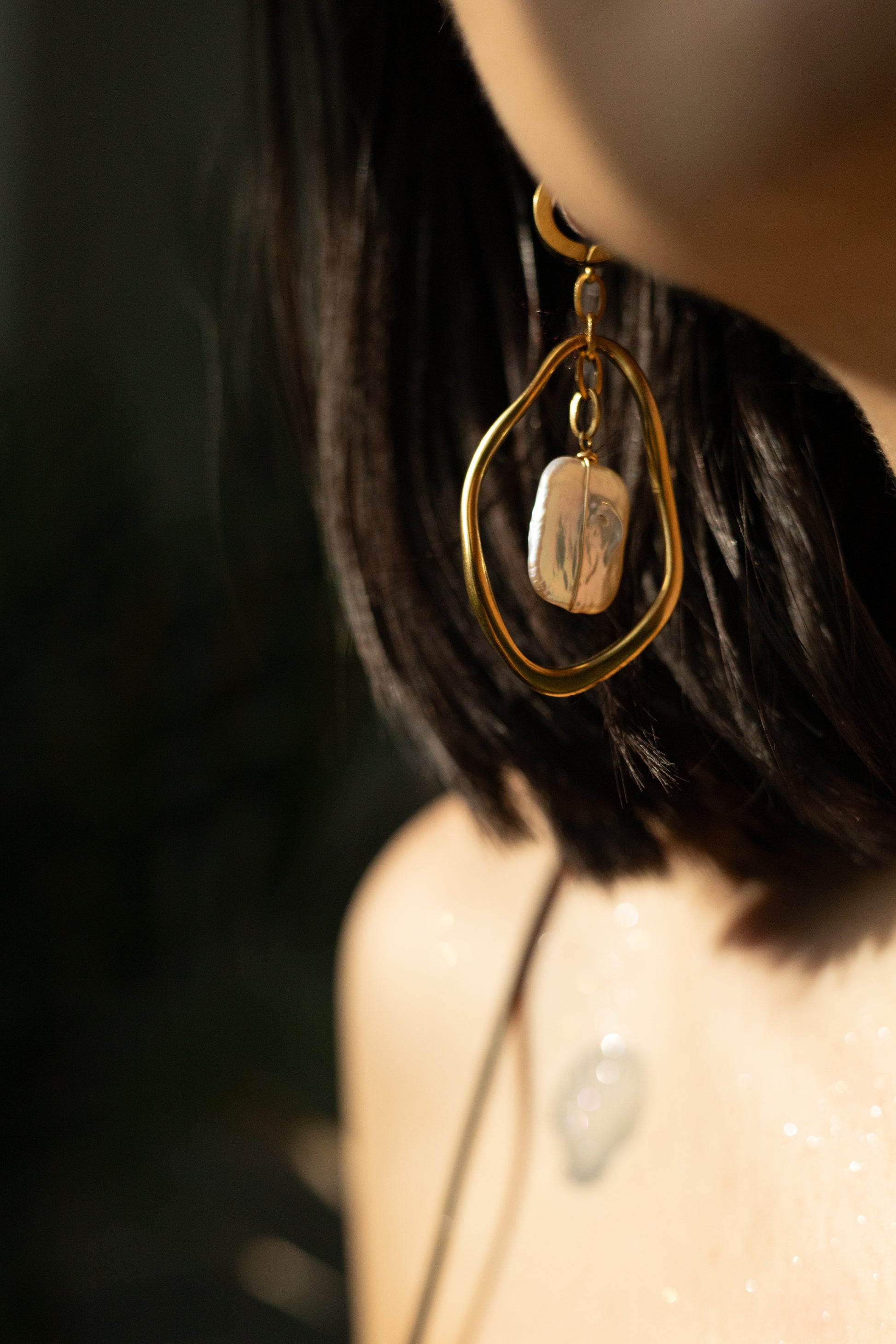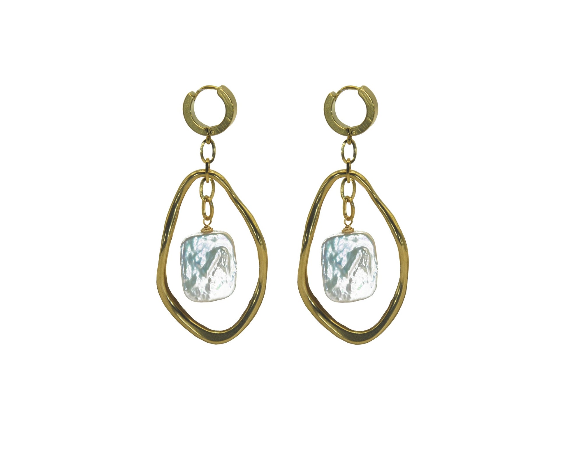 Cercei din oțel inoxidabil placat cu aur 18k și perle baroc