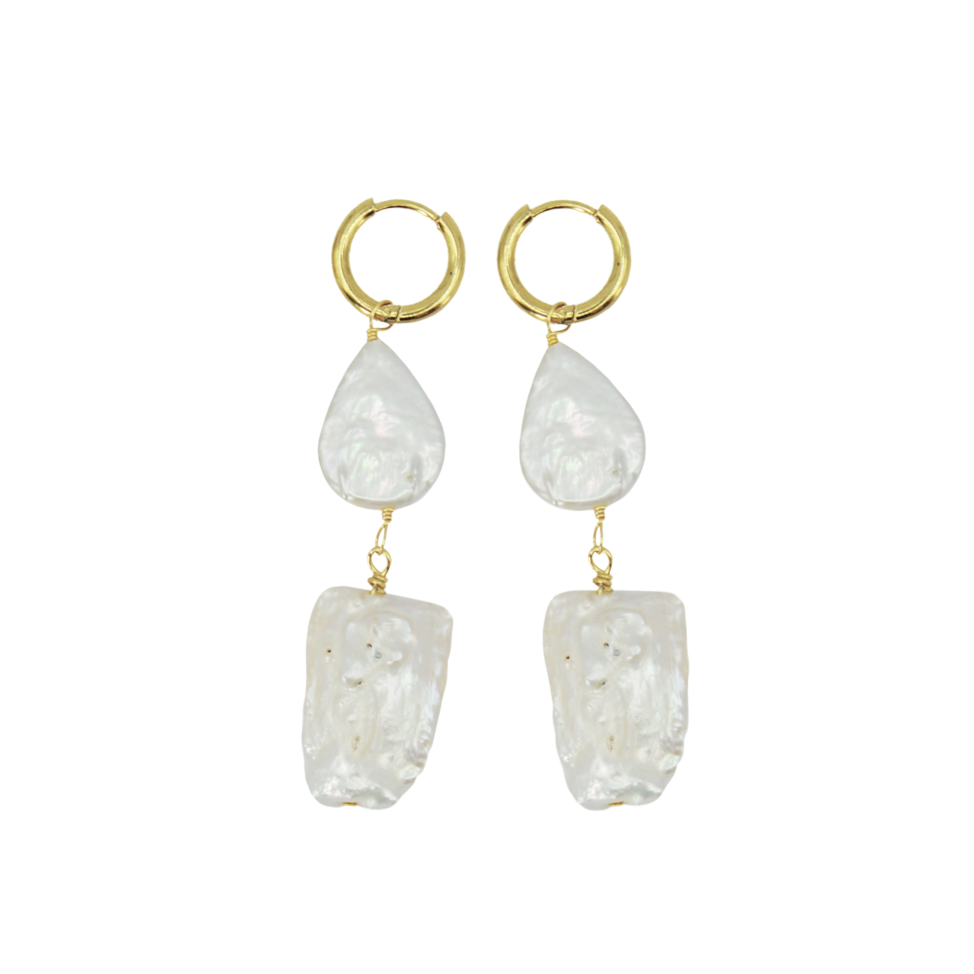 Cercei oțel inoxidabil placați cu aur 18k și perle baroc albe
