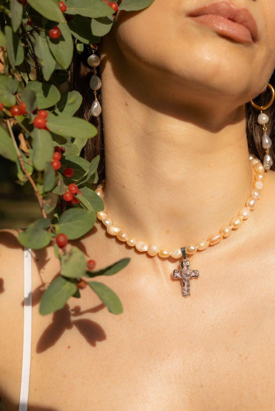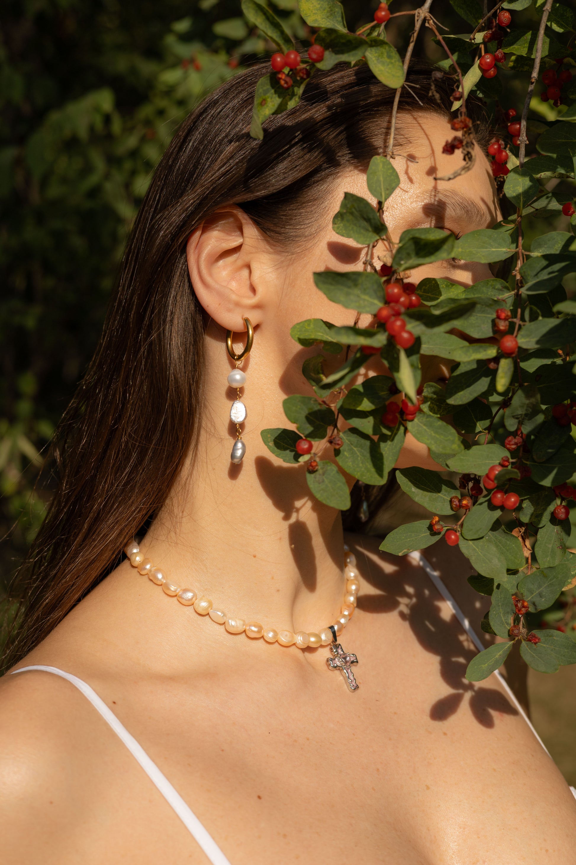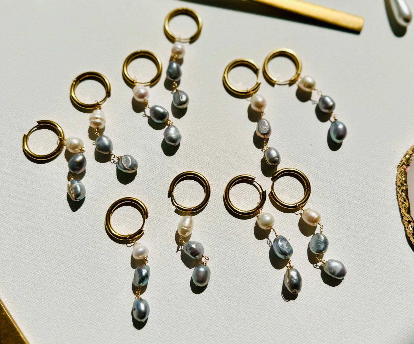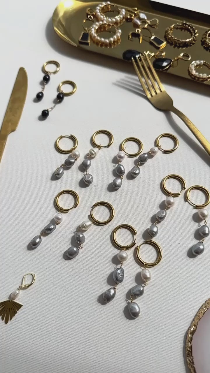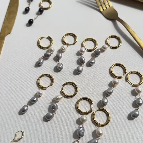 Cercei lucrați manual cu perle de cultură gri/albe