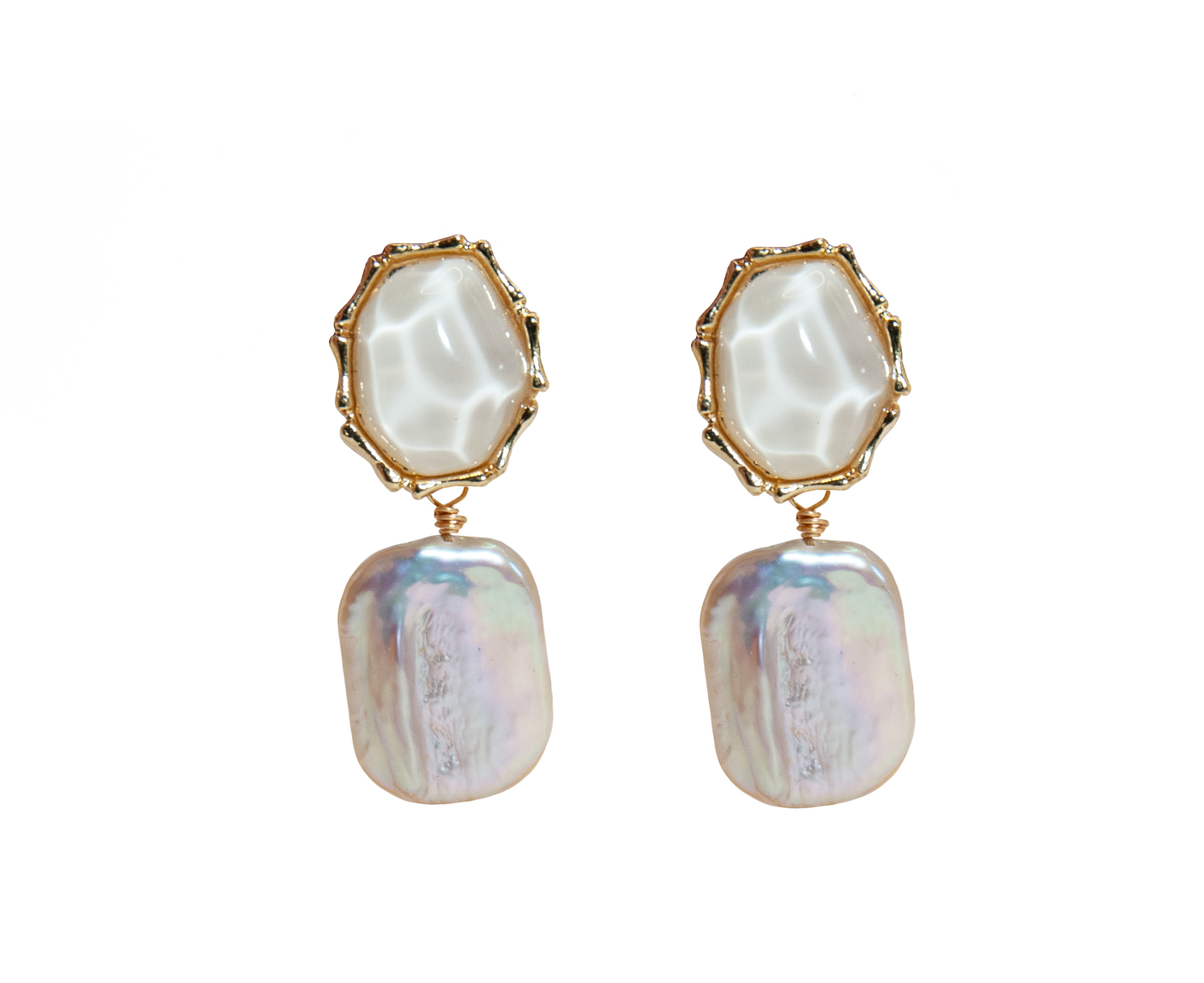 Cercei realizați din oțel inoxidabil rezistent, placat cu aur de 18K. Designul este completat de perlele baroc autentice, cu forme unice și reflexii spectaculoase în nuanțe de mov, roz și albastru, ce se schimbă delicat în funcție de lumină.