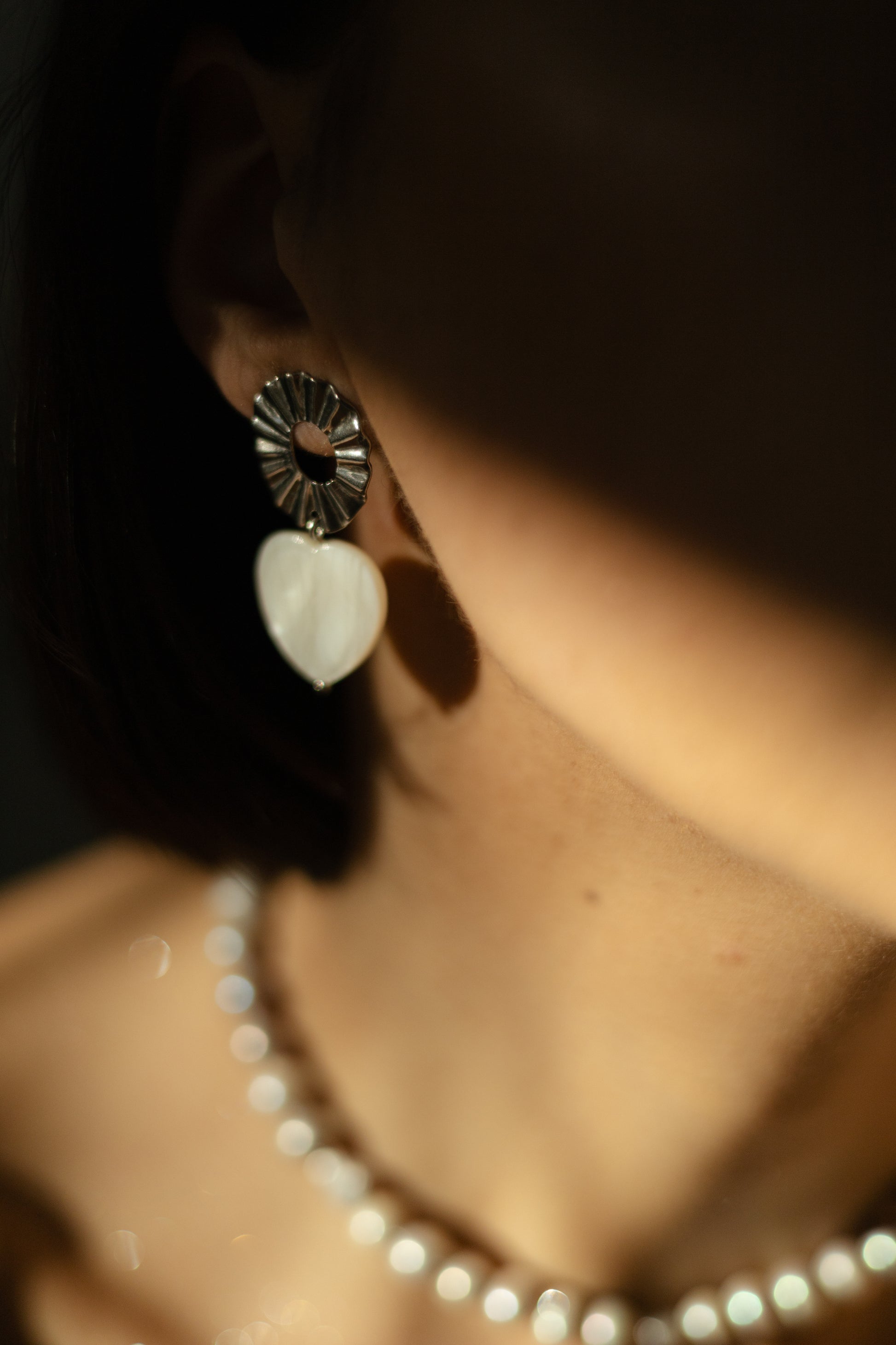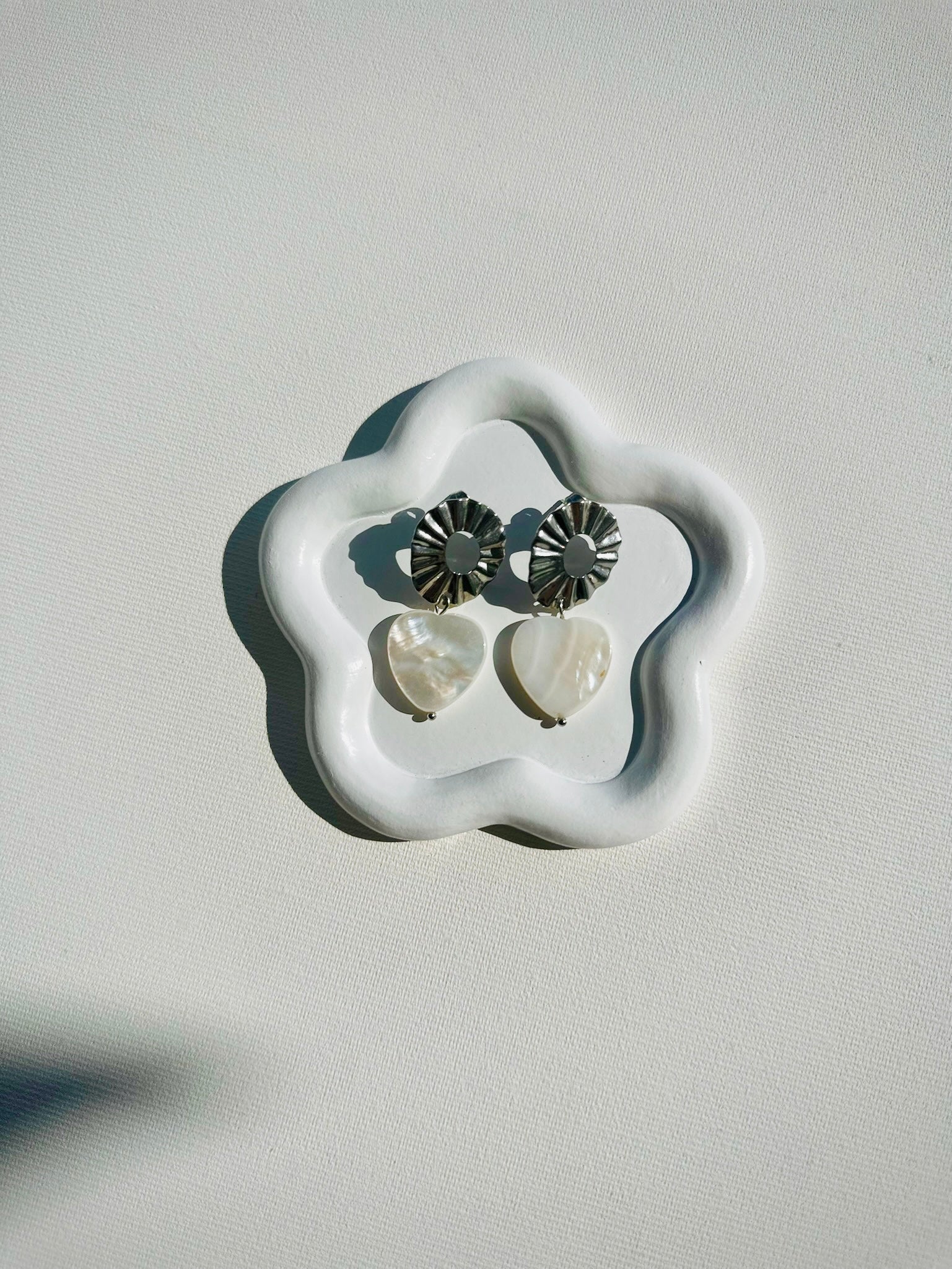 Cercei din inox și inimi din scoică naturală