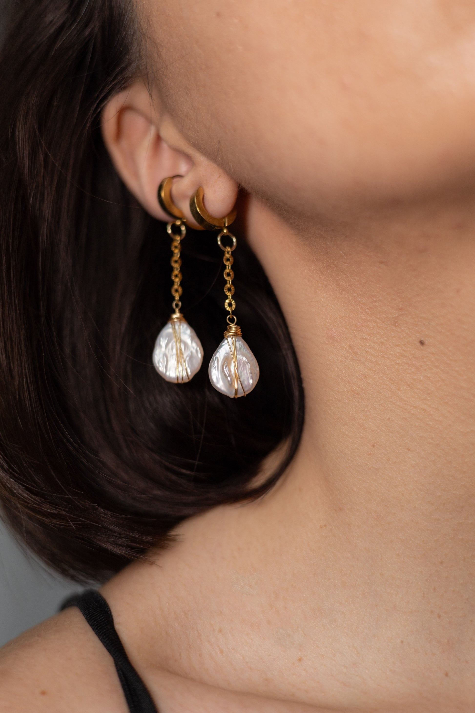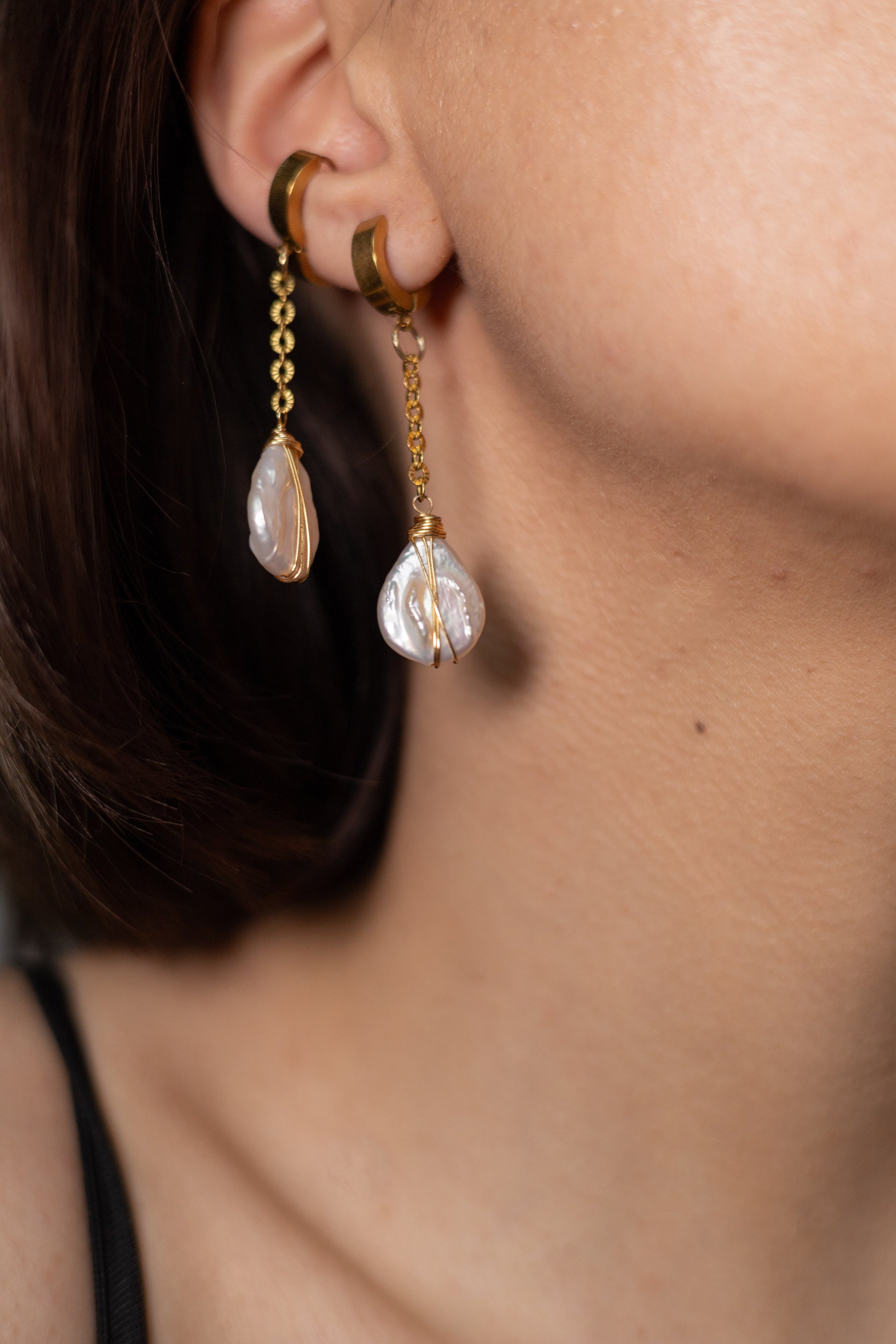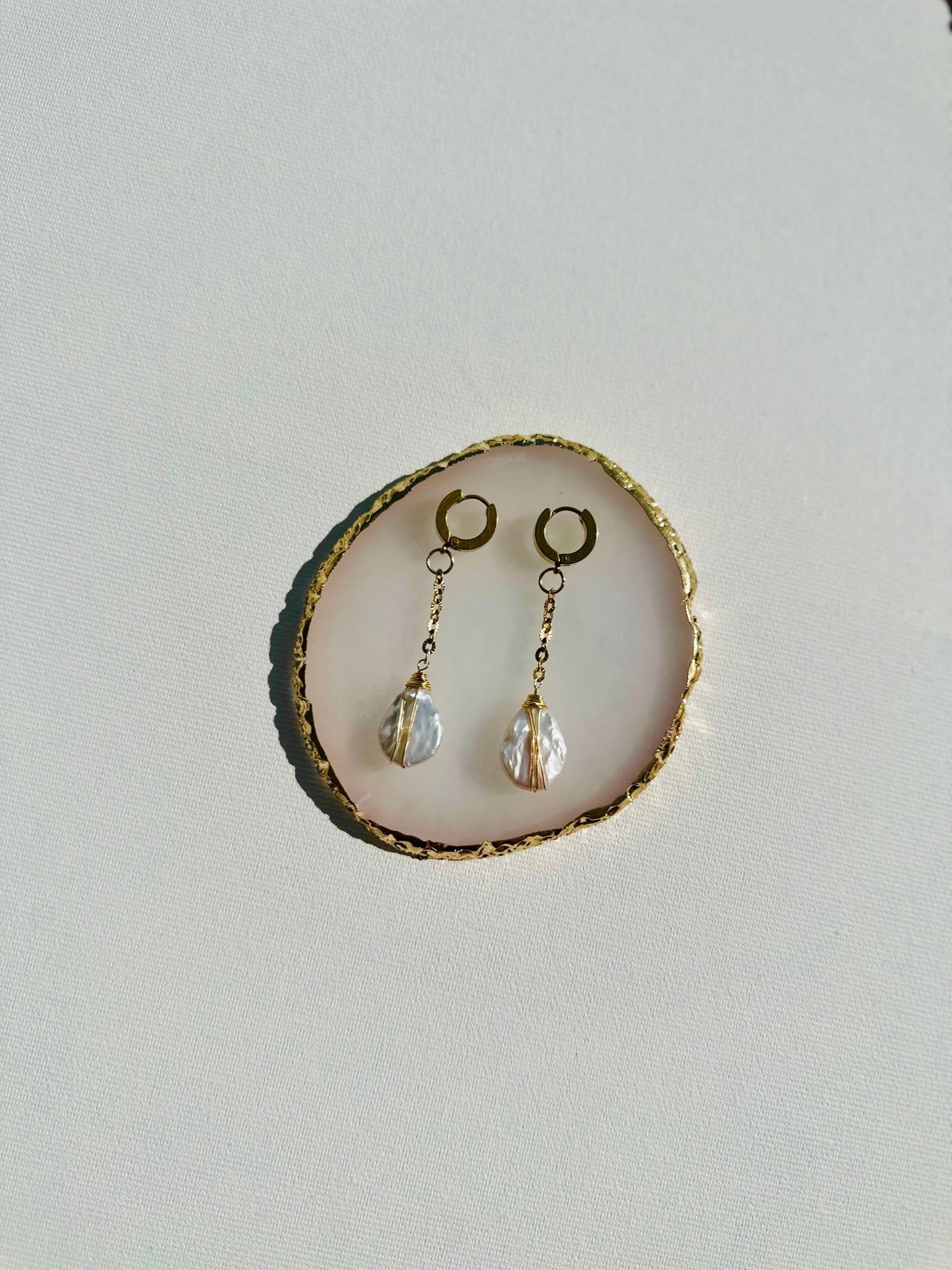Cercei din oțel inoxidabil și perle baroc albe