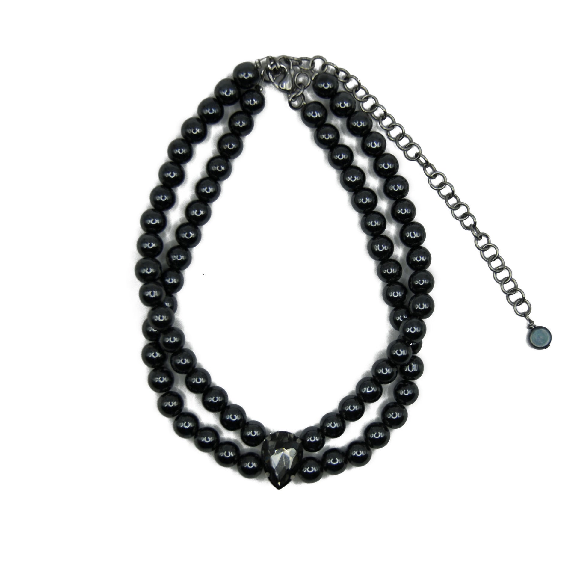Choker din hematit natural și cristal negru în montură de oțel inoxidabil
