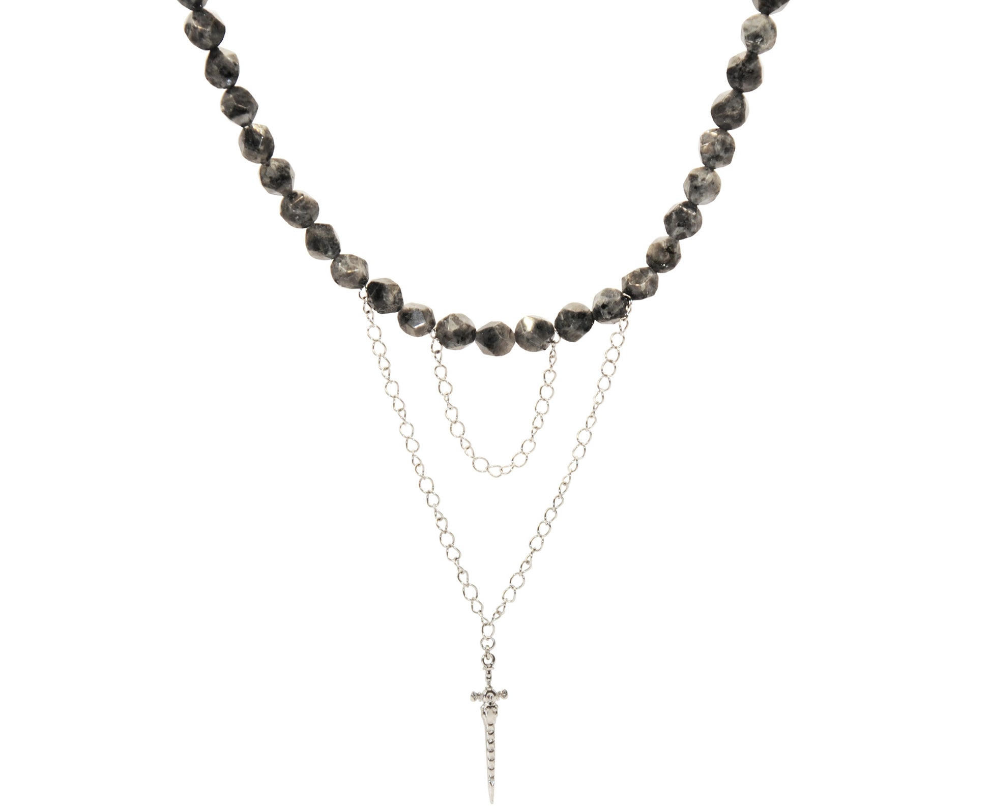 Colier realizat manual din pietre naturale labradorit fațetat și oțel inoxidabil