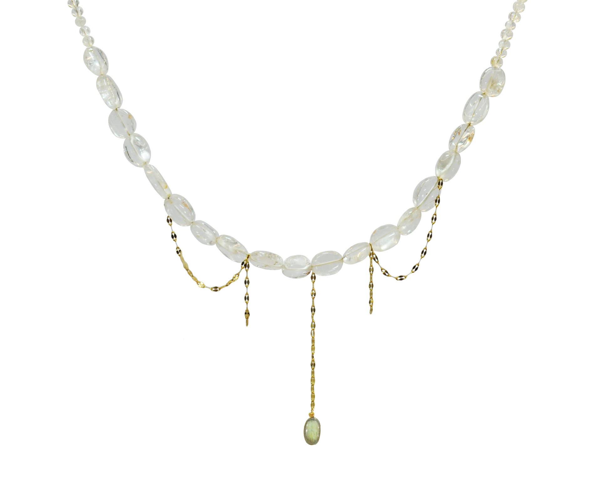 Colier lucrat manual cu pietre naturale Piatra Lunii si Labradorit si accesorii din otel inoxidabil placat cu aur 18k
