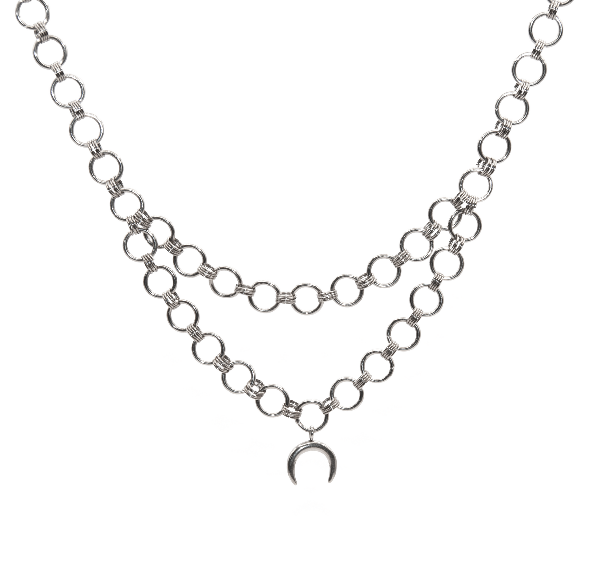 Colier lucrat manual din oțel inoxidabil, realizat cu manual, fiecare za fiind montată individual.