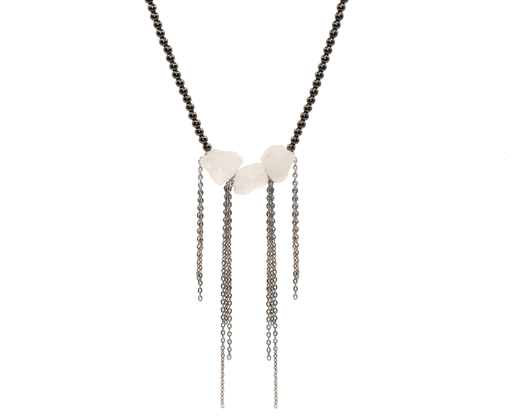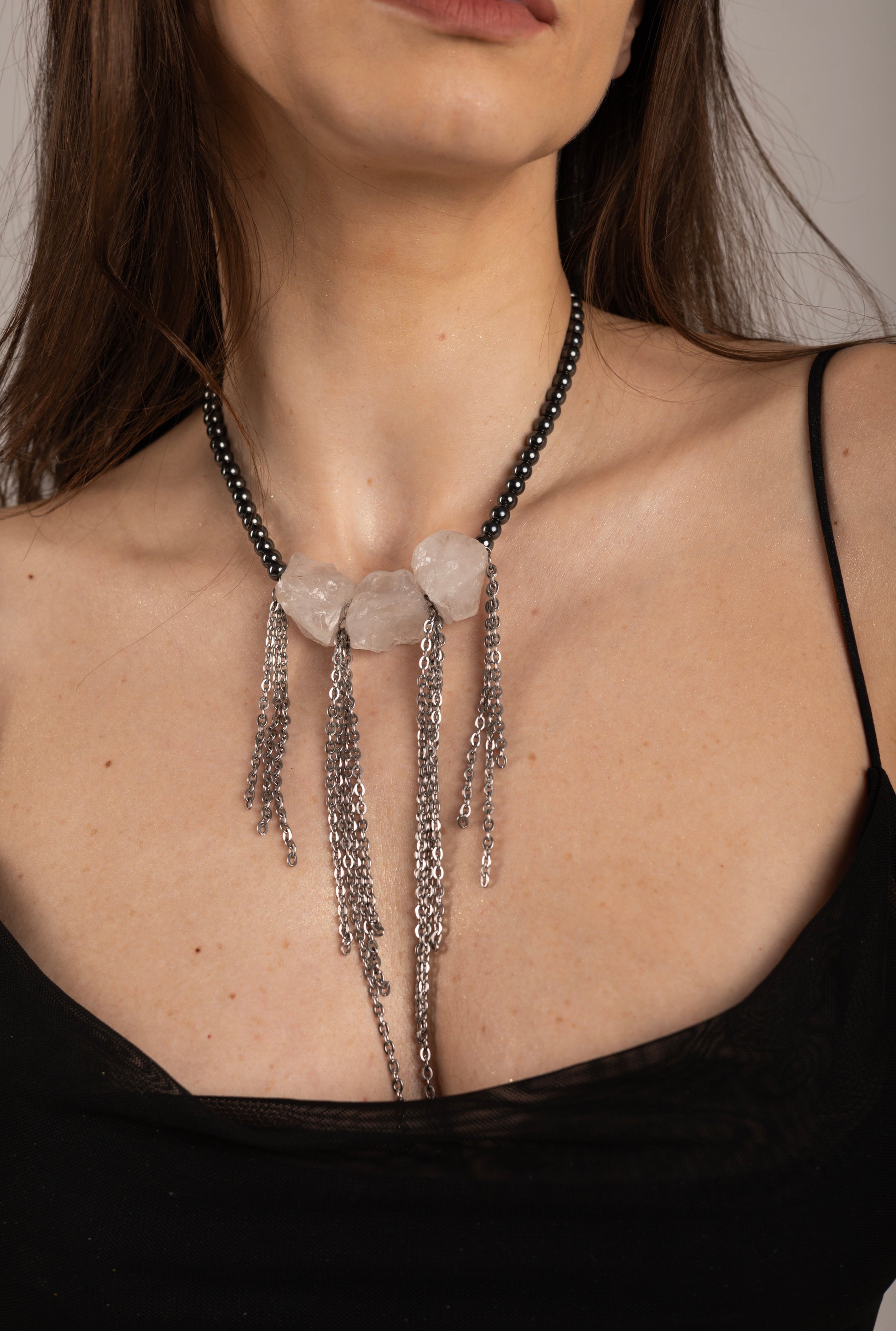 Colier realizat manual din pietre naturale hematit și cuarț și accesorii din oțel inoxidabil