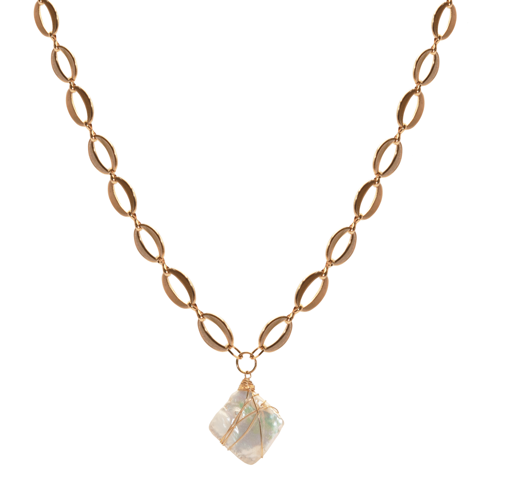 Colier din oțel inoxidabil placat cu aur 18K și pandantiv perla naturală baroc