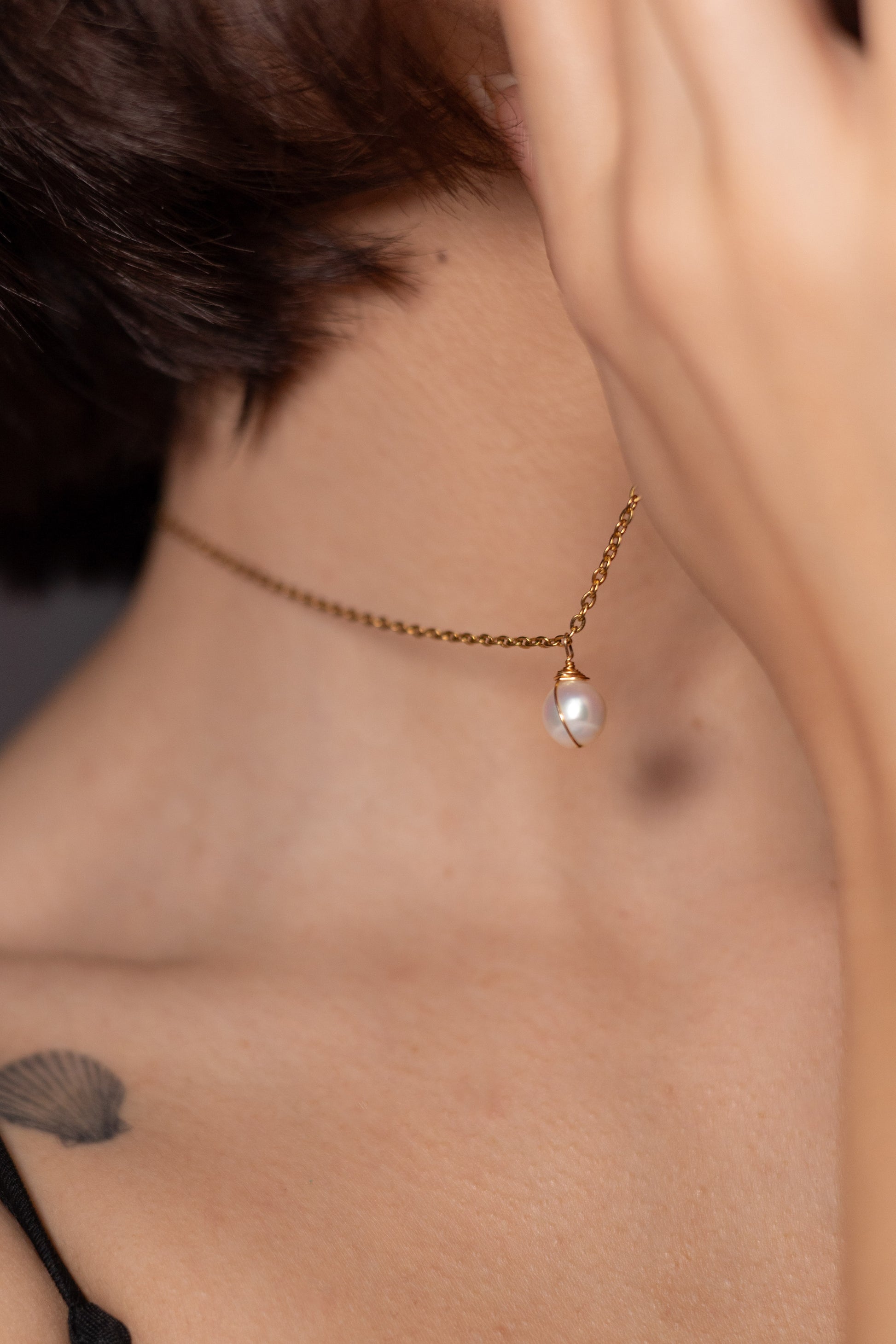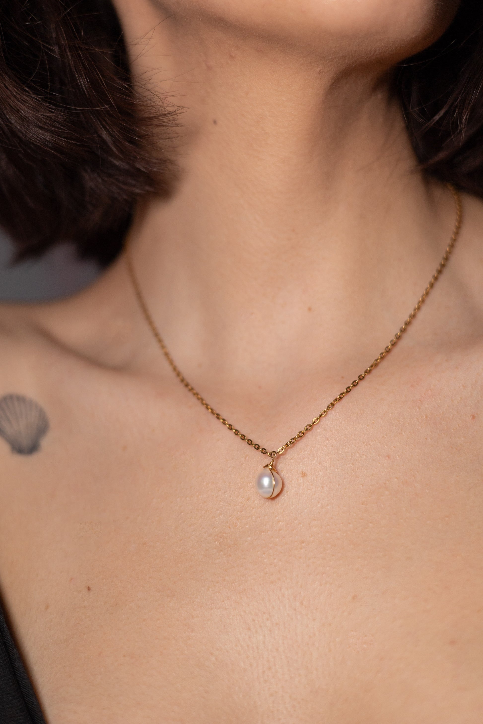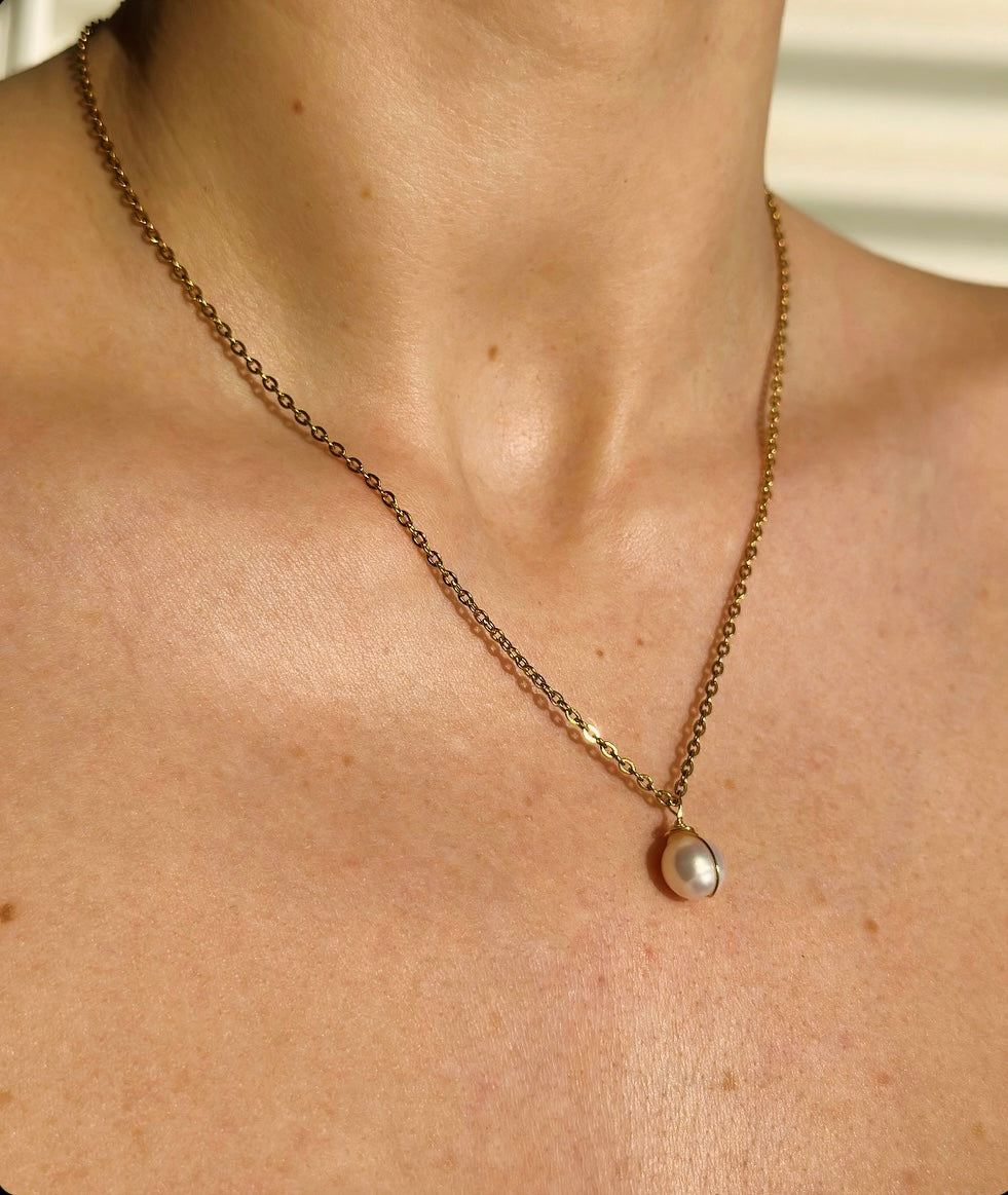 Colier din oțel inoxidabil placat cu aur 18k și perlă de cultură