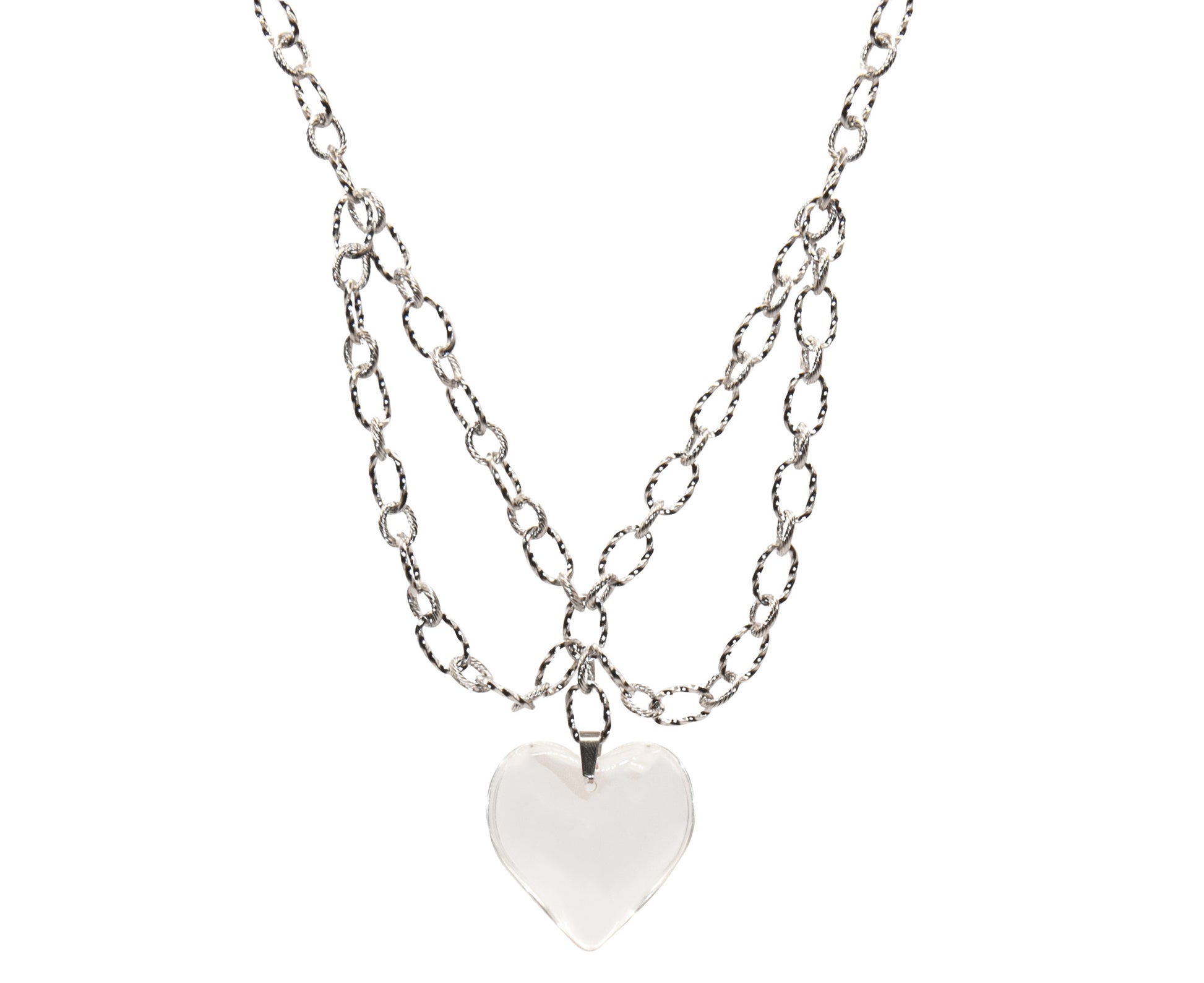 Colier din oțel inoxidabil și inimă din sticlă transparentă